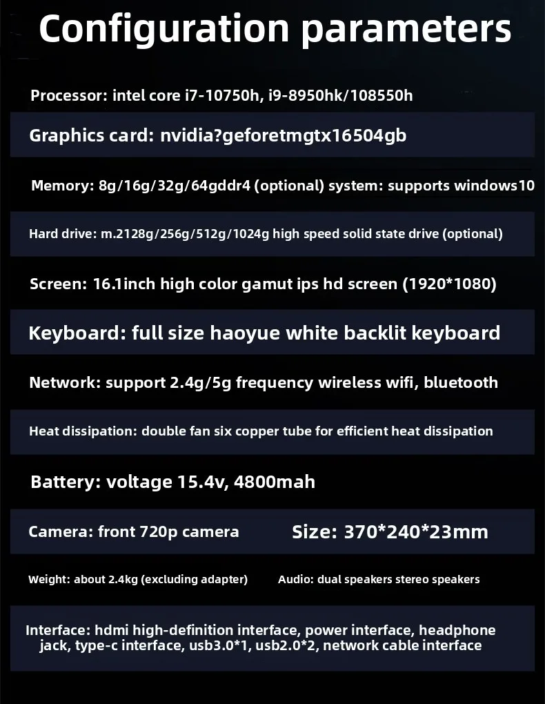 16-Inch laptop 10th generation i7 i9 10885H high-end 4G independent display office game book portable e-sports book