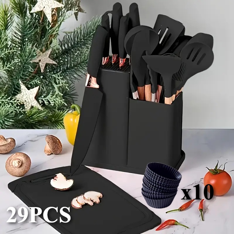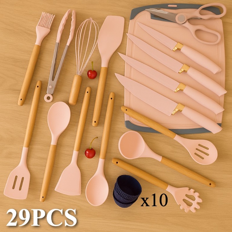 29pcs Non-Stick Cookware Set with Stand - Heavy-Duty Silicone Kitchen Utensils, Heat-Resistant up to 480°F (250°C), Non-Stick Pots, Pans, Spatulas, Whisk, Tongs, Cutting Boards - Complete Cooking Set for Home, Professional,