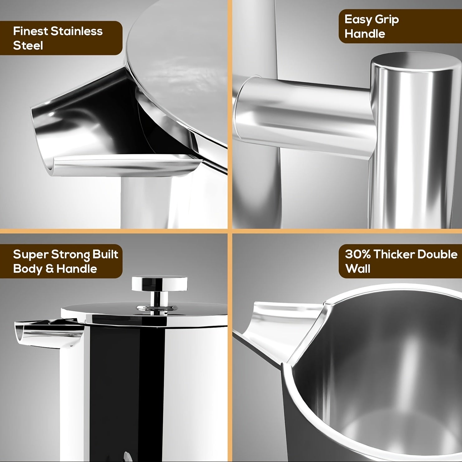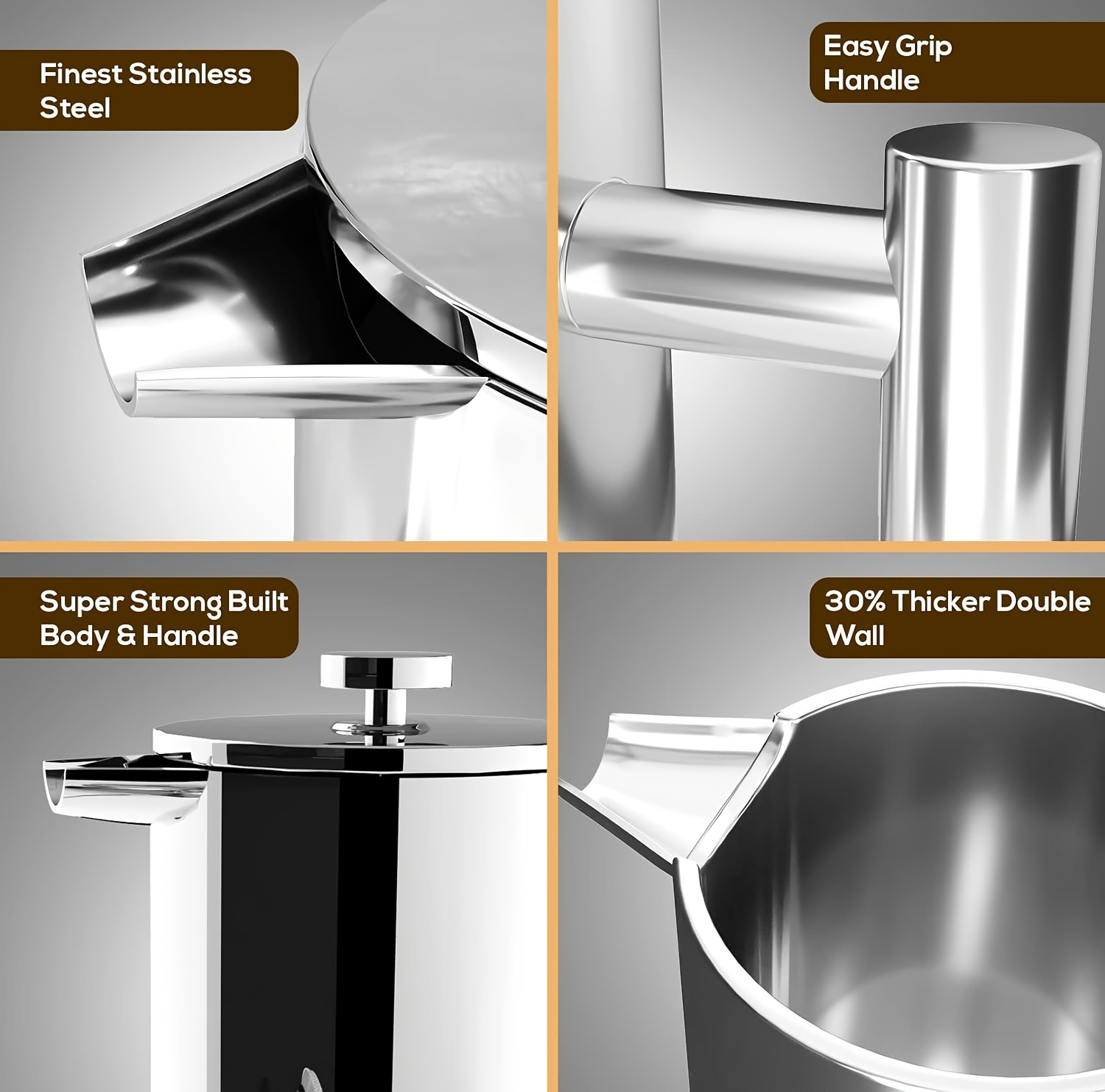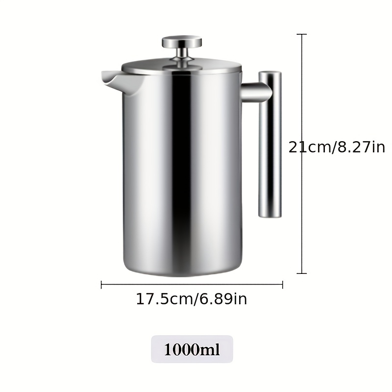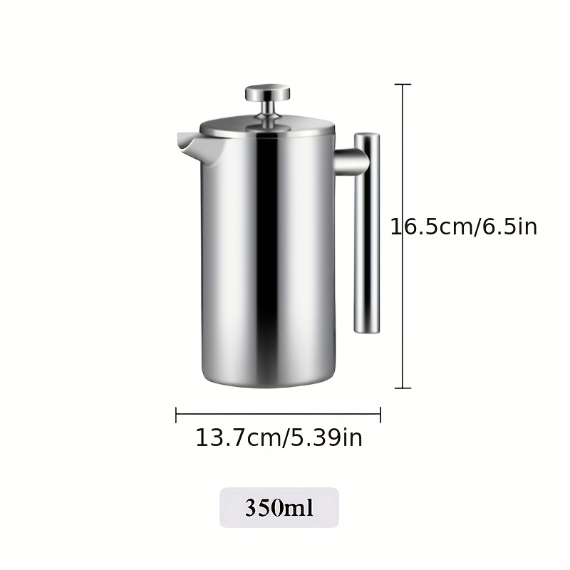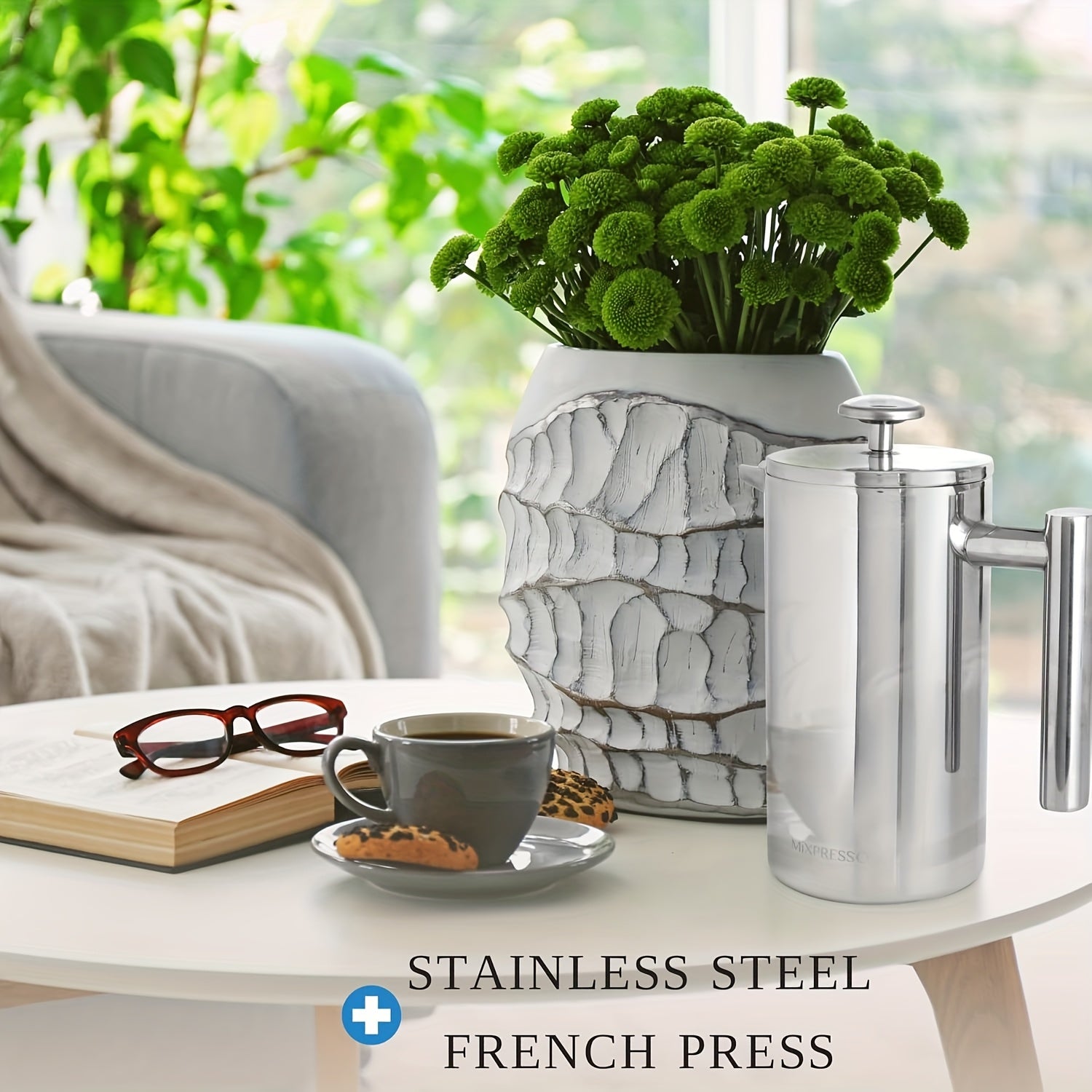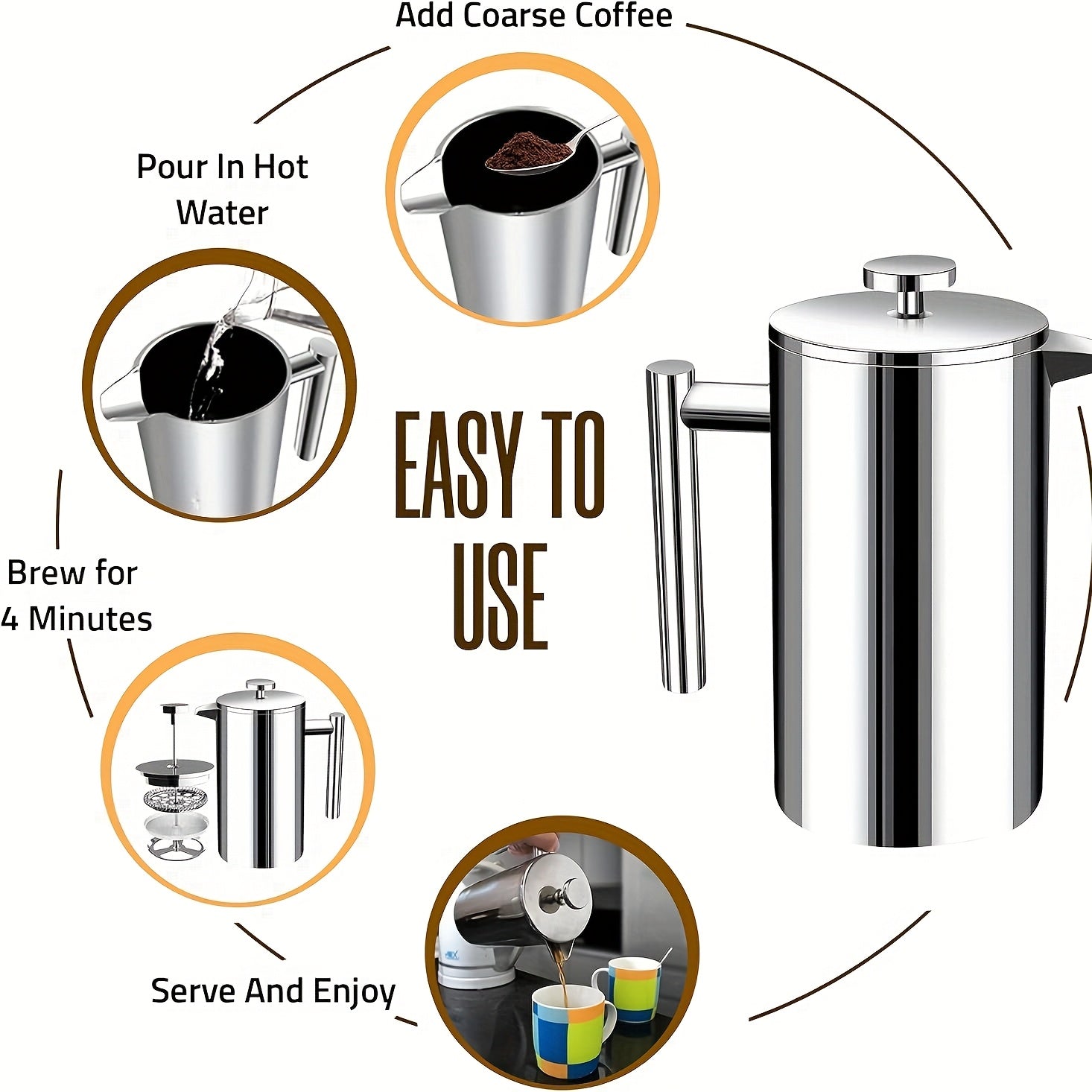 2pcs, French Press Coffee Maker, Stainless Steel French Press Coffee Maker, 4 Filter Heat Resistant, Double Wall Insulated French Press Stainless Steel & Tea Brewer Easy Clean & Easy Press, Tea Maker For Kitchen & Camping, Co