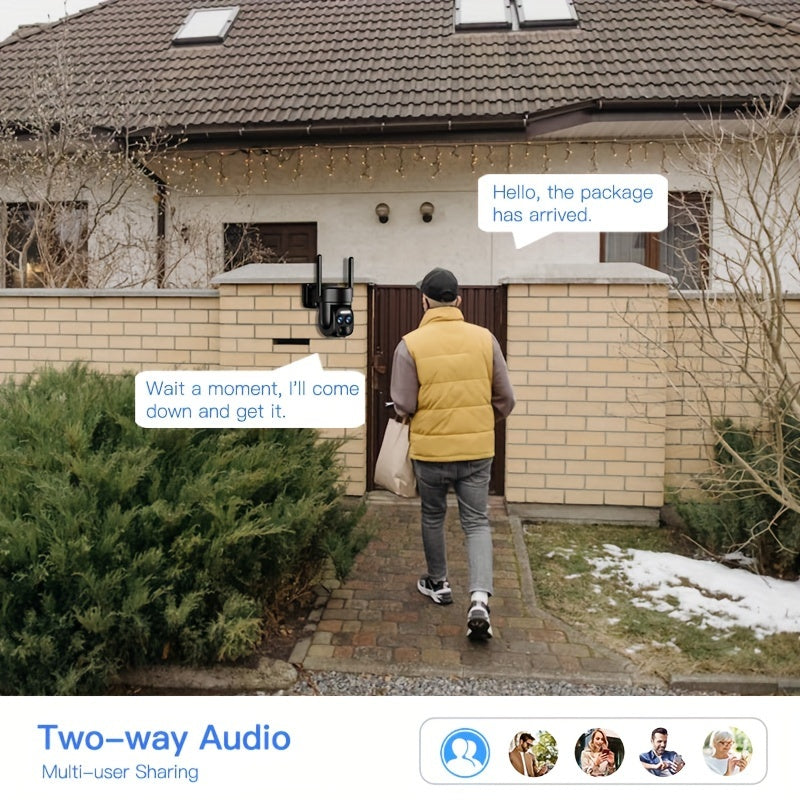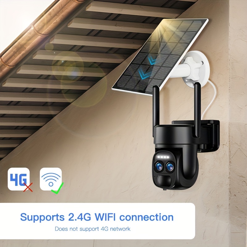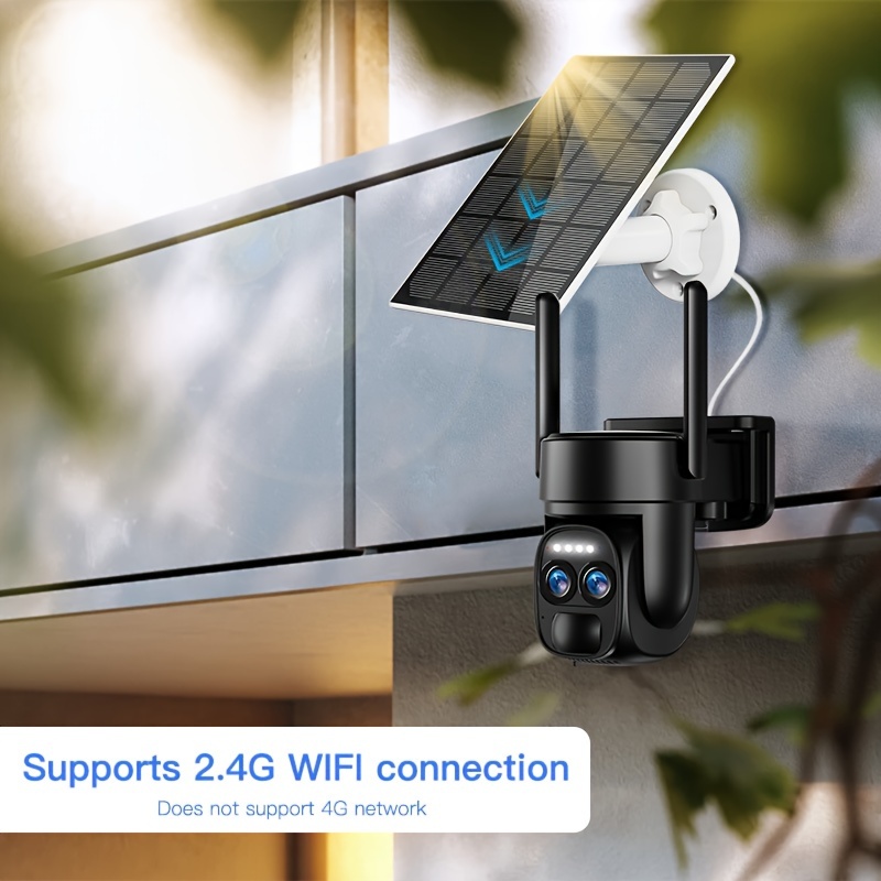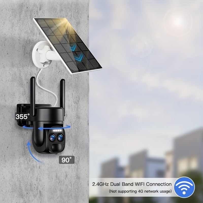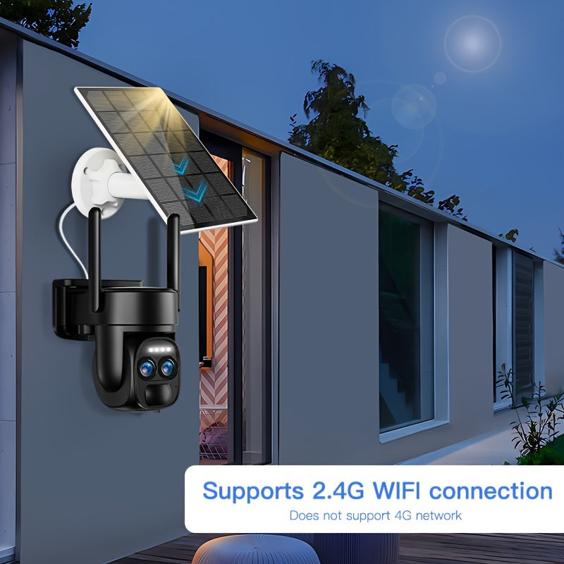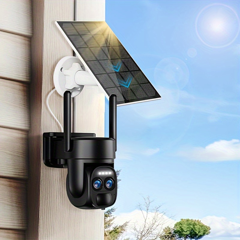 4PCS 2K High-definition Safety Camera With Solar Panel 6MP PTZ Monitoring System Dual Lens, 2.4G WiFi Sports Spotlight, Color Night Vision, Two-way Call, Ultra Wide Angle, PIR Motion Detection, Two-way Audio, Alarm - Ideal Ch