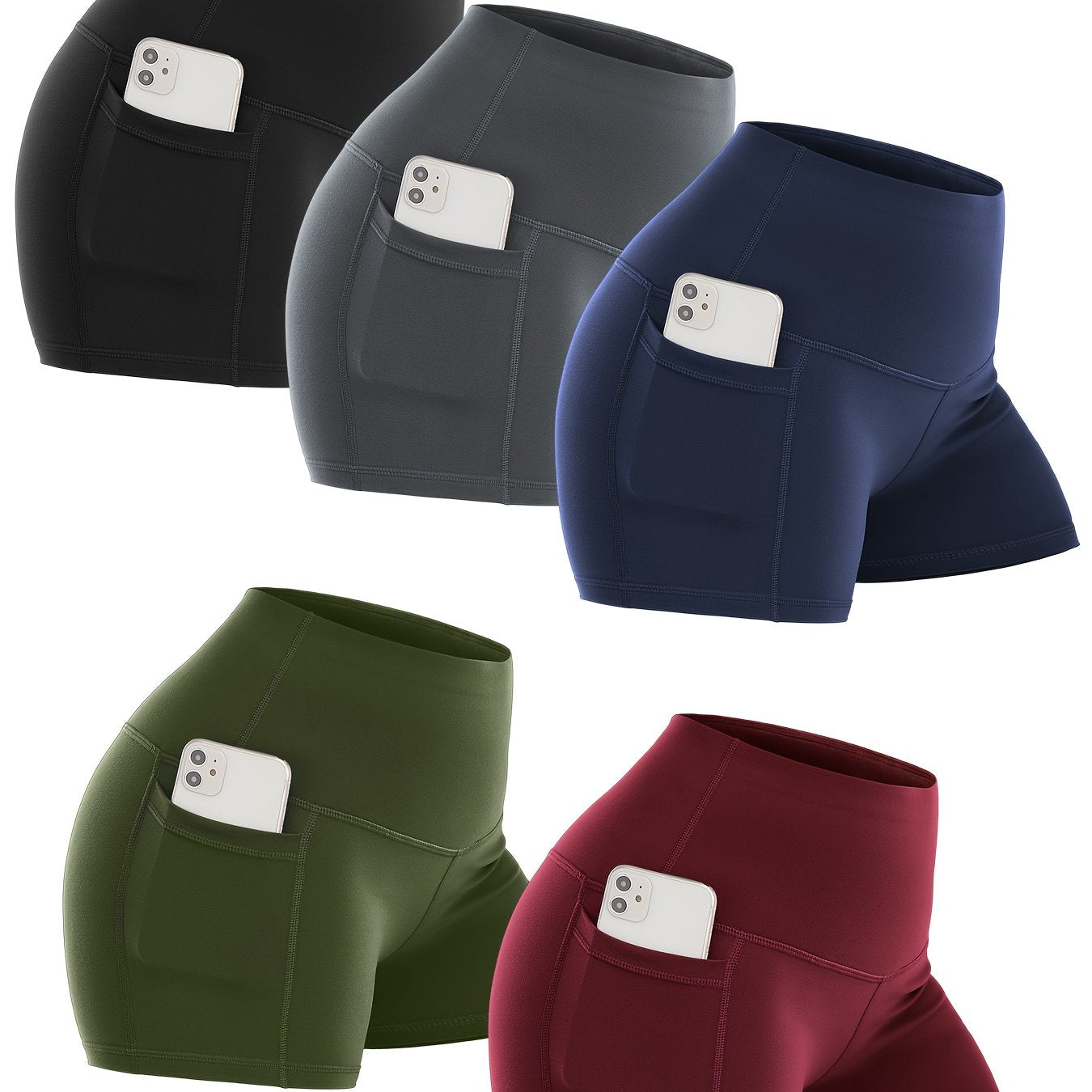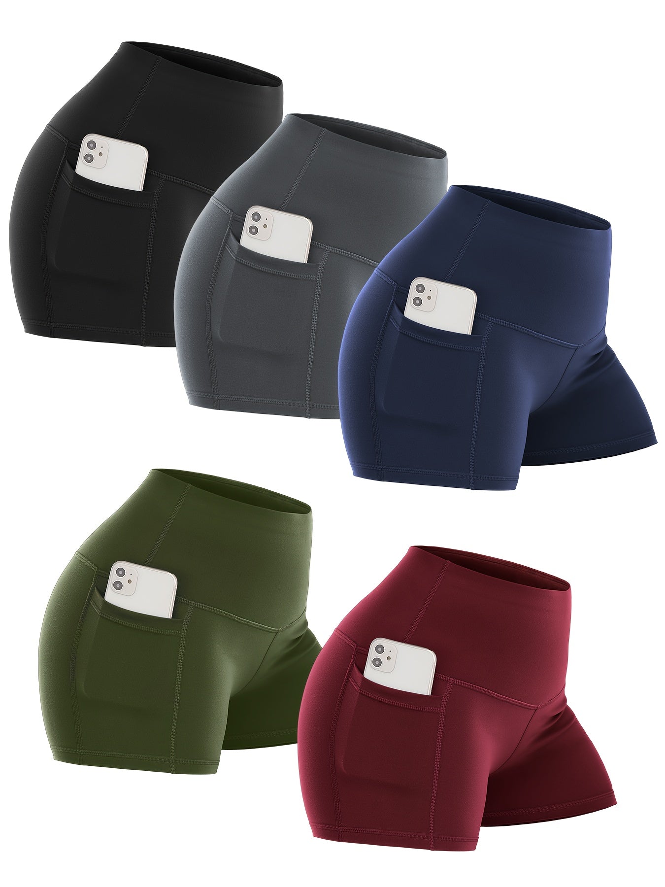 5pcs Biker Shorts For Women With Pockets High Waisted Shorts
