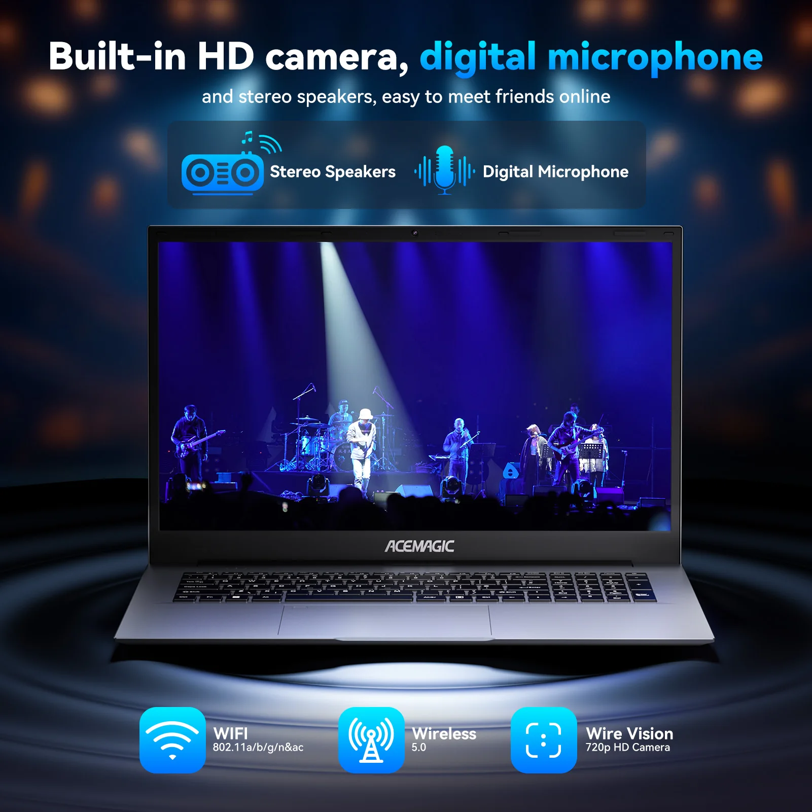 This laptop comes with a built - in 720p HD camera, digital microphone, and stereo speakers, making online interactions with friends a breeze. Paired with WIFI 802.11a/b/g/n&ac and Wireless 5.0 for stable connectivity, you'll enjoy clear video calls and immersive audio during chats or virtual hangouts. Perfect for staying in touch with loved ones.
