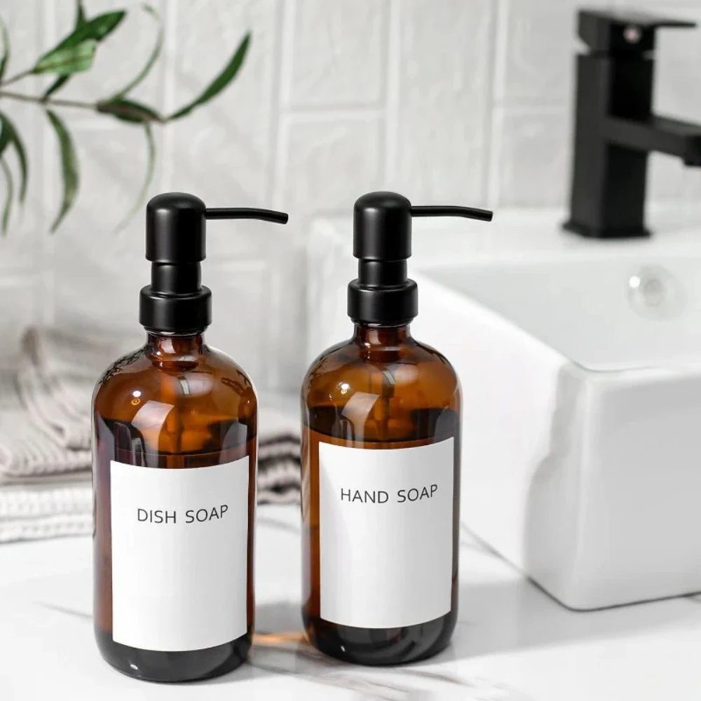 Amber Glass Soap Dispenser 2 Pack Bathroom Hand Dispenser with Stainless Steel Pump 16 Oz Kitchen Hand Dish