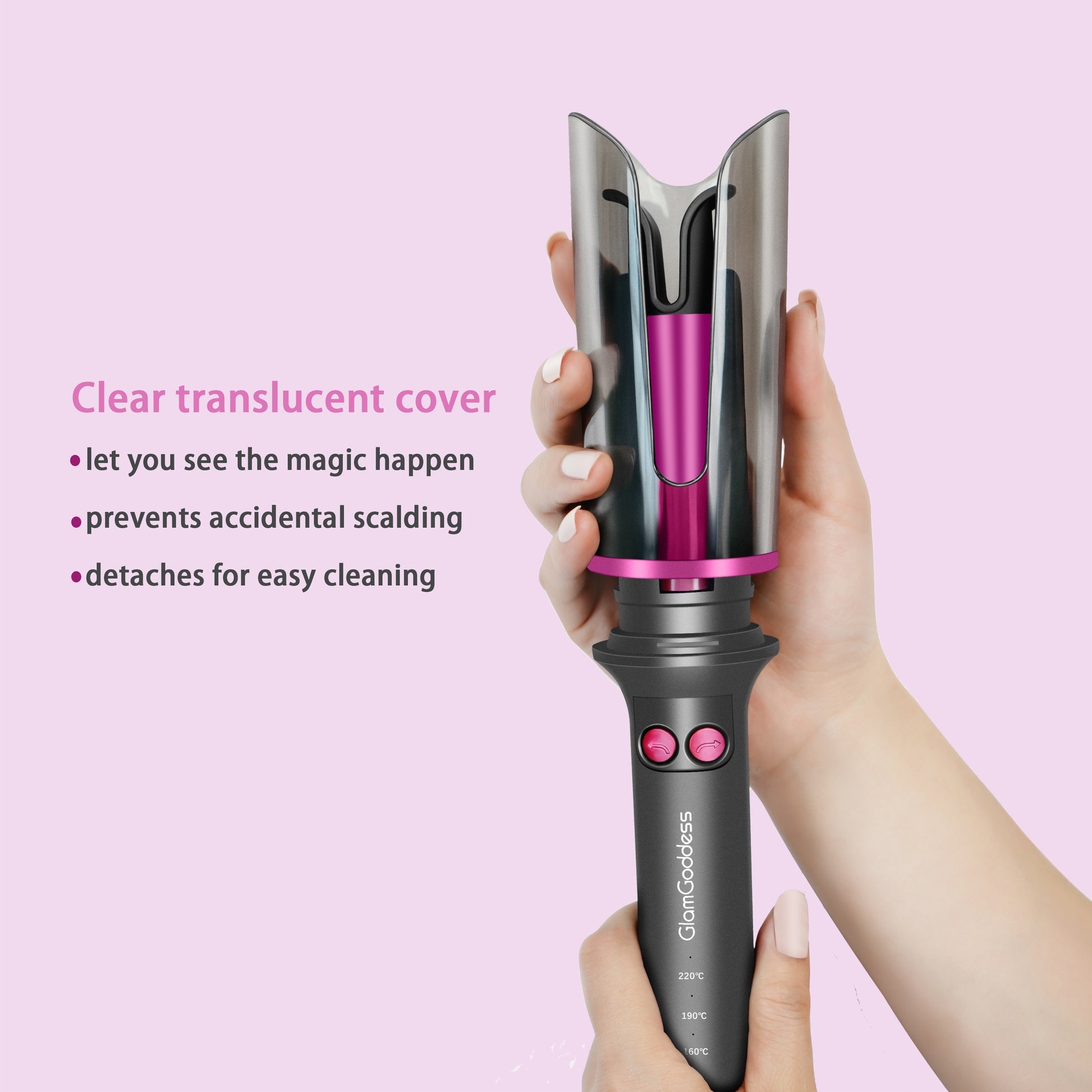 Get beautiful curls effortlessly all day long with the GA001 automatic hair curler, designed to make curling your hair a simple task regardless of its length. This curling iron ensures even heat distribution for stunning curls while safeguarding your hair. Achieve effortless styling with the dual anti-scald feature by simply pressing a button!