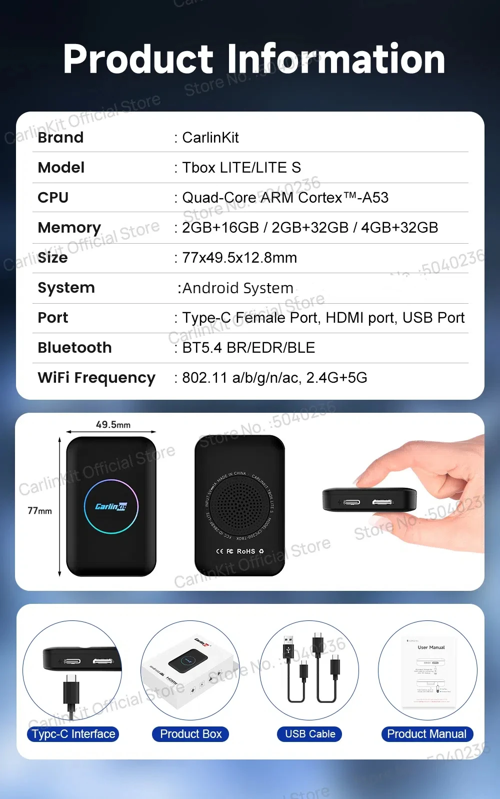 CarlinKit Lite Android TV Box 3-In-1 Wireless Adapter Support Netflix IPTV Wireless Android Auto & CarPlay Dongle For Car Radios