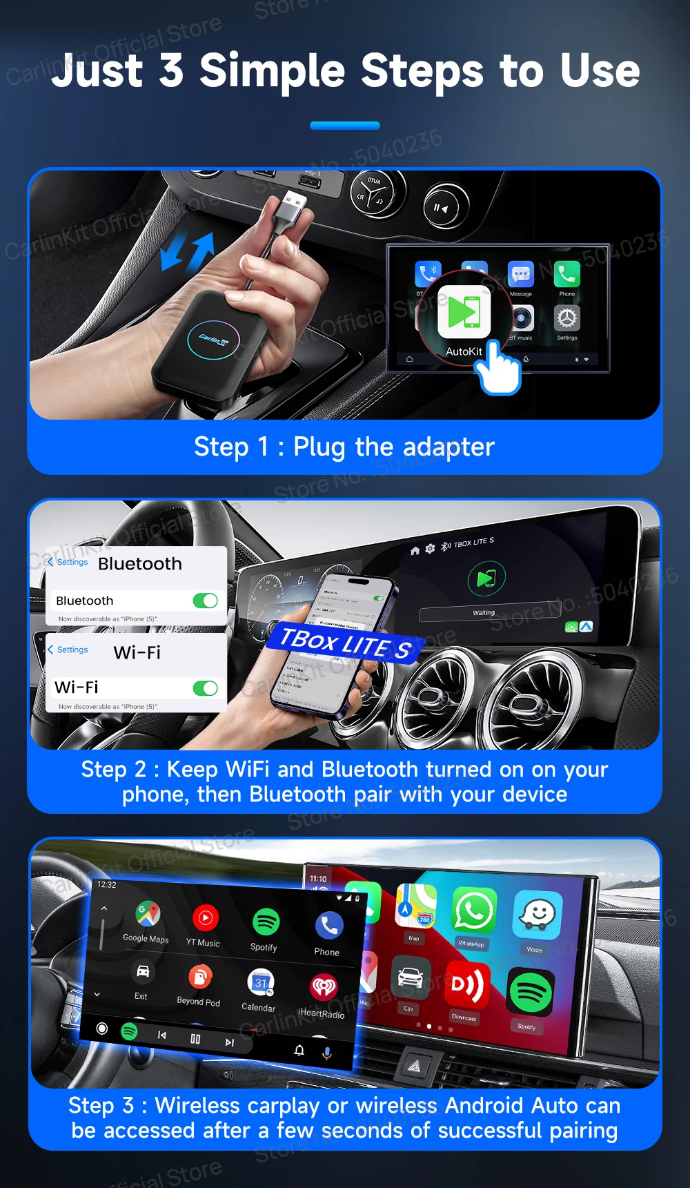 Our adapter is designed for ease of use, with auto-connect and plug-and-play features that allow for a seamless driving experience.Our CarPlay adapter providing reliable solution for all types of cars.