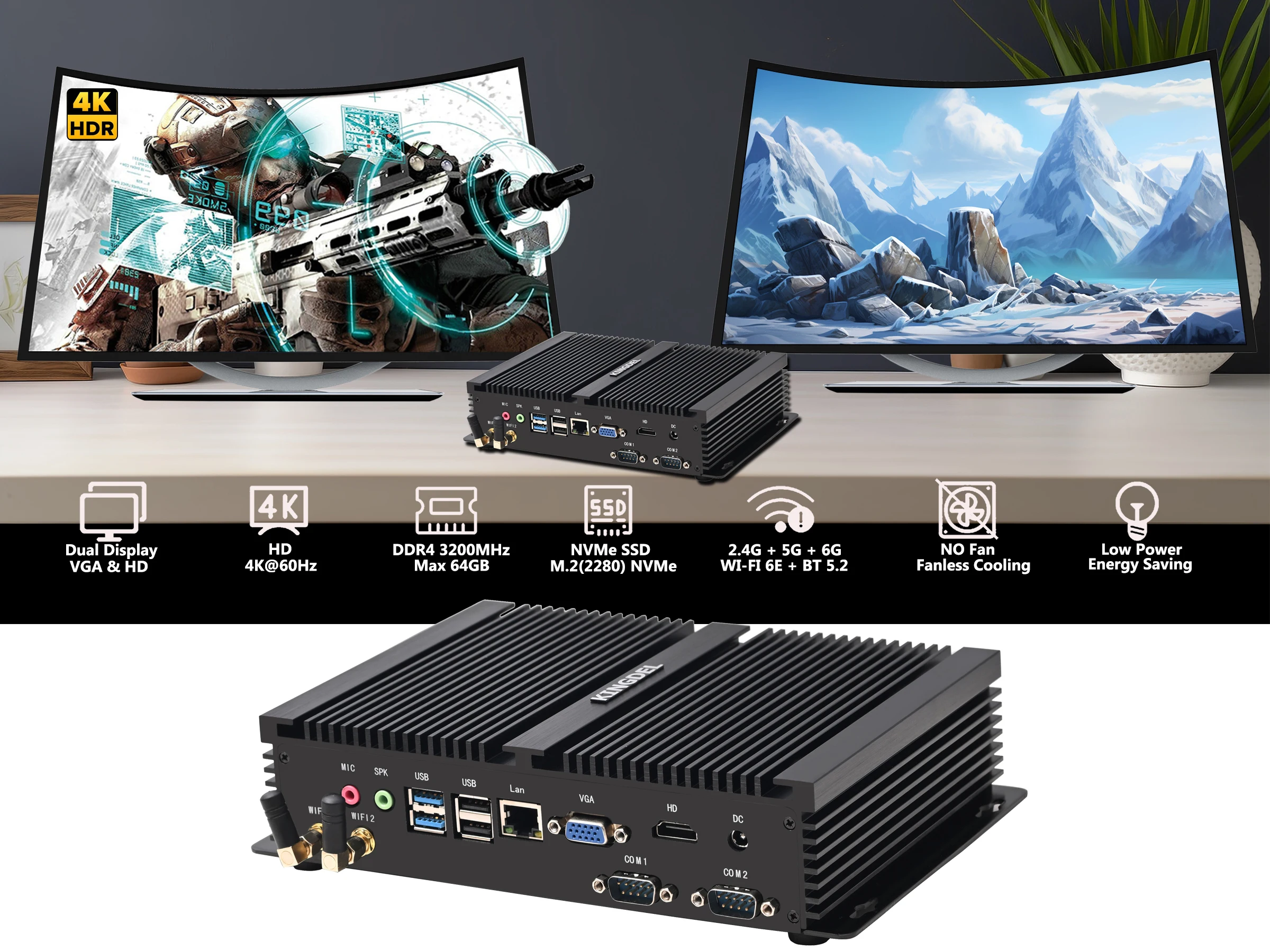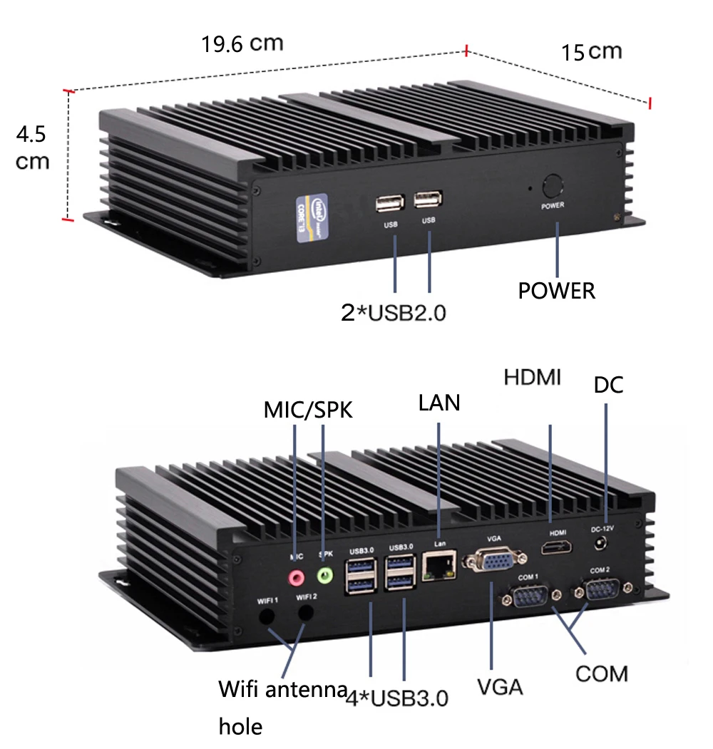 Feature: Fanless+8th Gen. i7 CPU+HDMI+DP+4*USB2.0