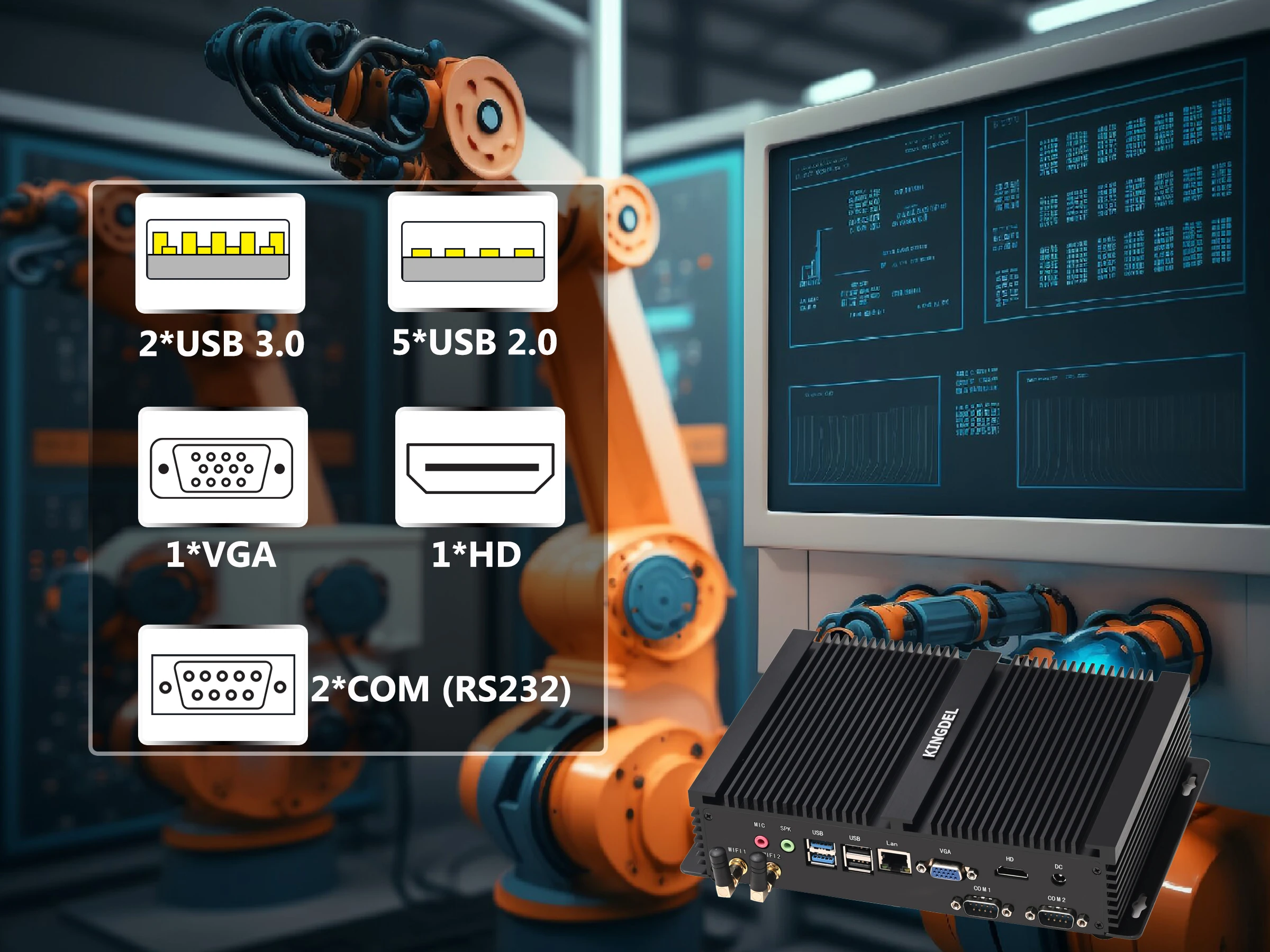 1*HDMI, 1*VGA, 1*RJ45 LAN Port, 4*USB3.0, 3*USB2.0, 1*DC IN, 1*MIC, 1*SPK,2*COM |