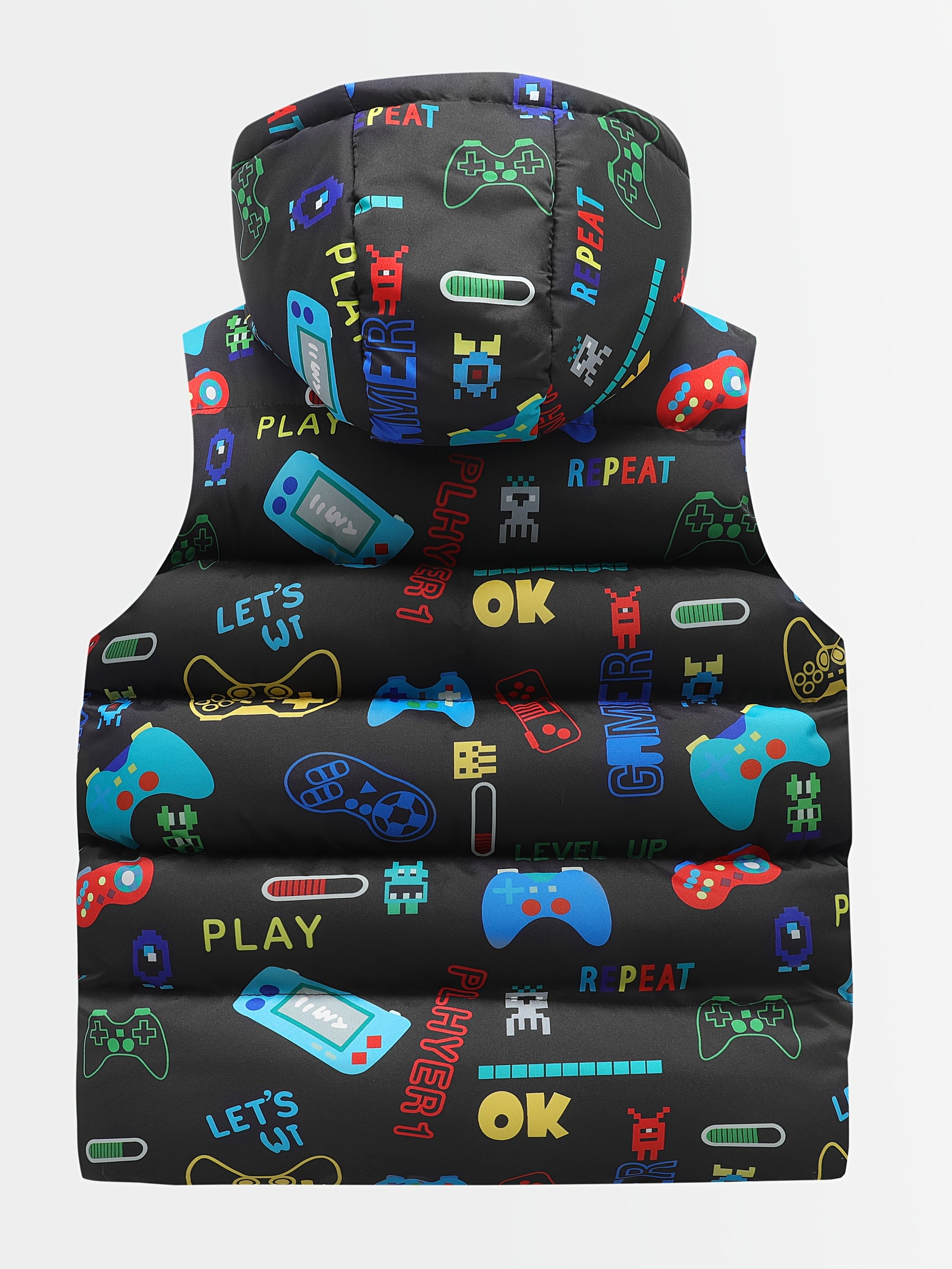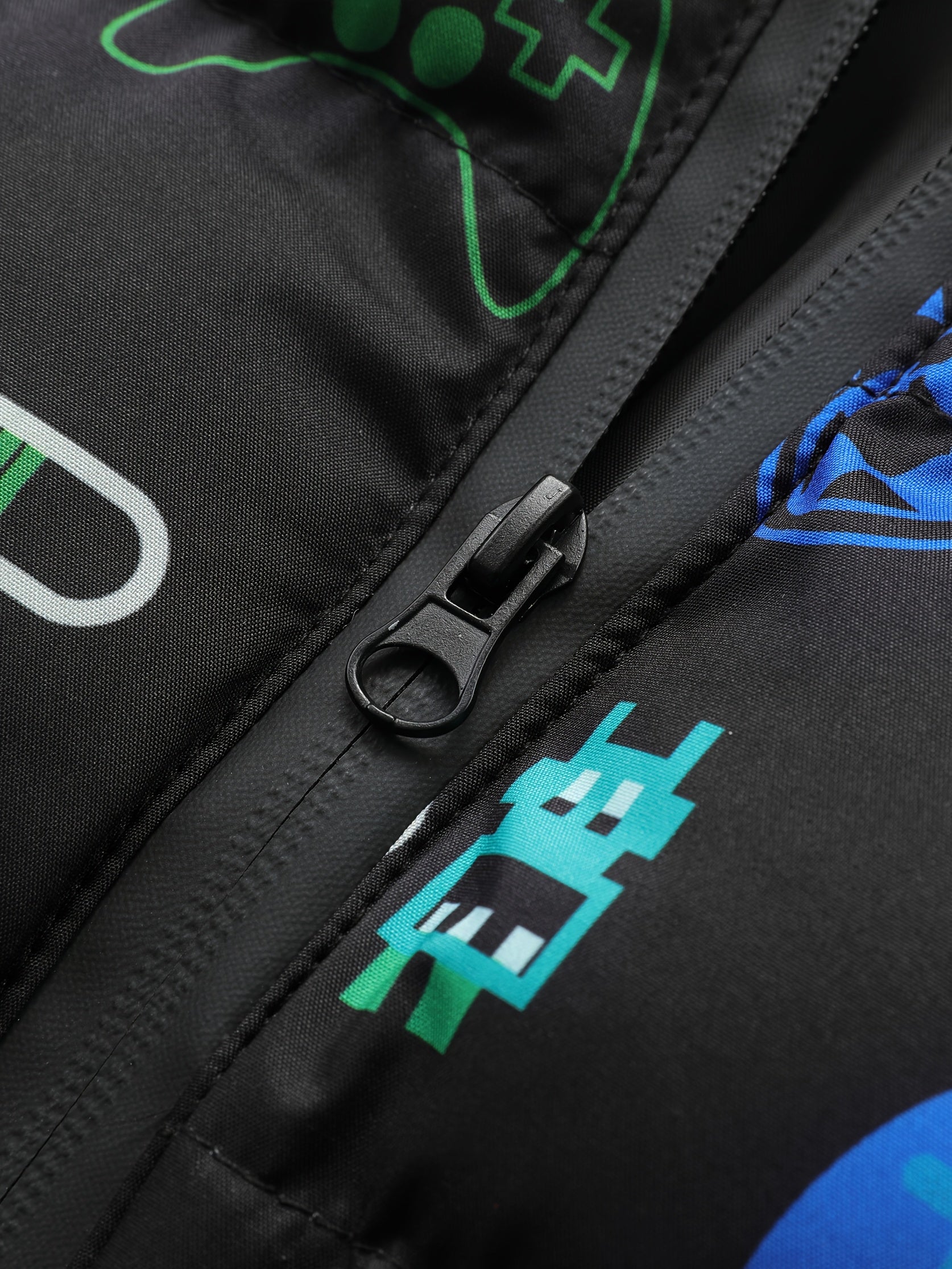 Colorful Alphabet Pattern Boys' Casual Leisure Cartoon Game Machine Zipper Hooded Jacket Vest Coat, for Teenager