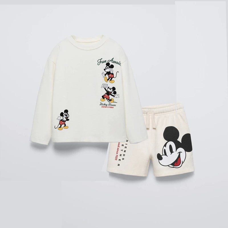 Disney Short Sleeve Outfits Boys And Girls Fashion Casual Tshirt+Shorts Summer Costume New Print Tees Loose Shorts 2 Piece Set