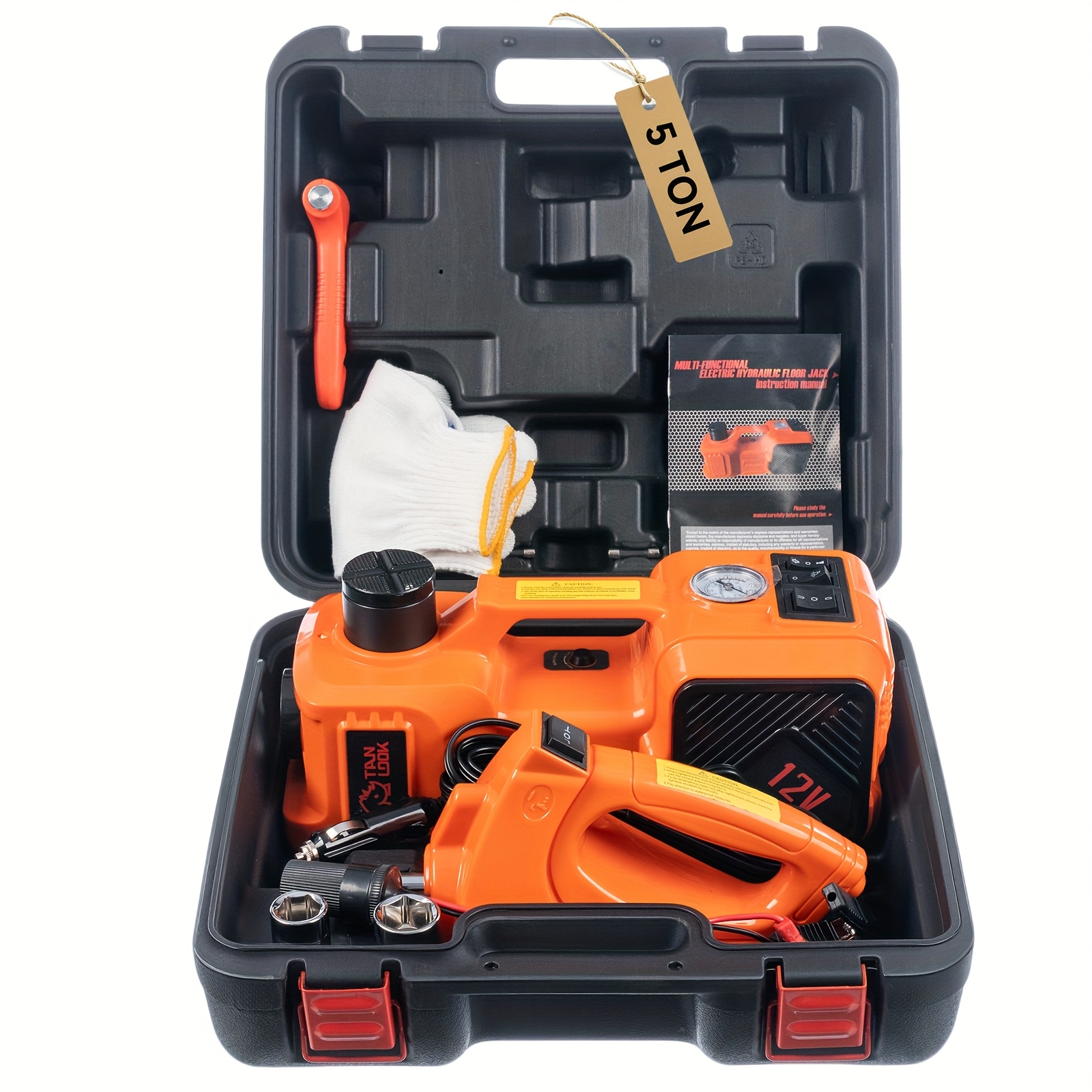 Electric Car Jack, Portable Car Lift with Built-in Air Pump, 5-ton/11023-pound Hydraulic Jack, Equipped with Electric Impact Wrench, And LED Lighting for SUV, MPV, Sedan, Truck Tire Replacement And Garage Maintenance