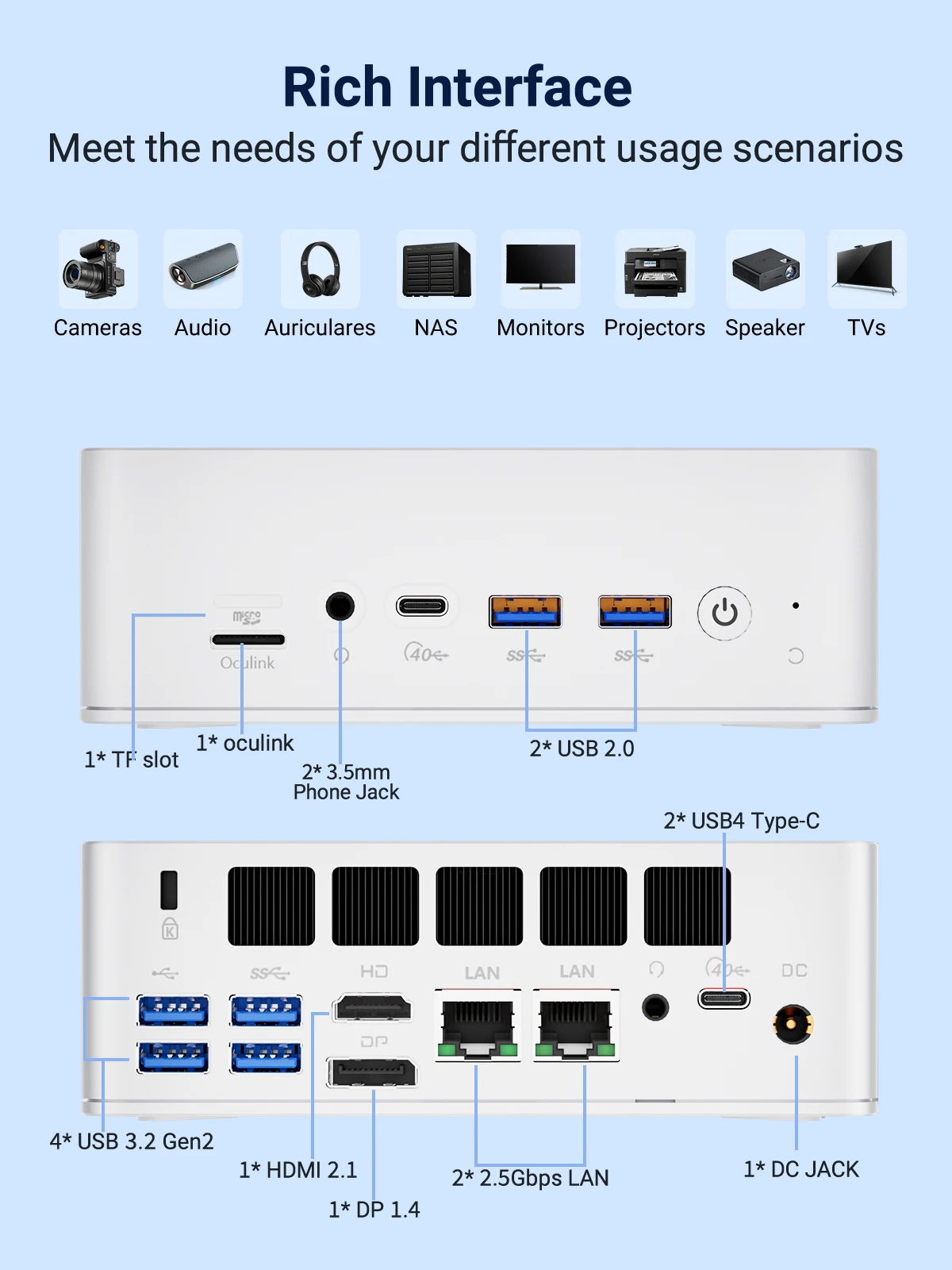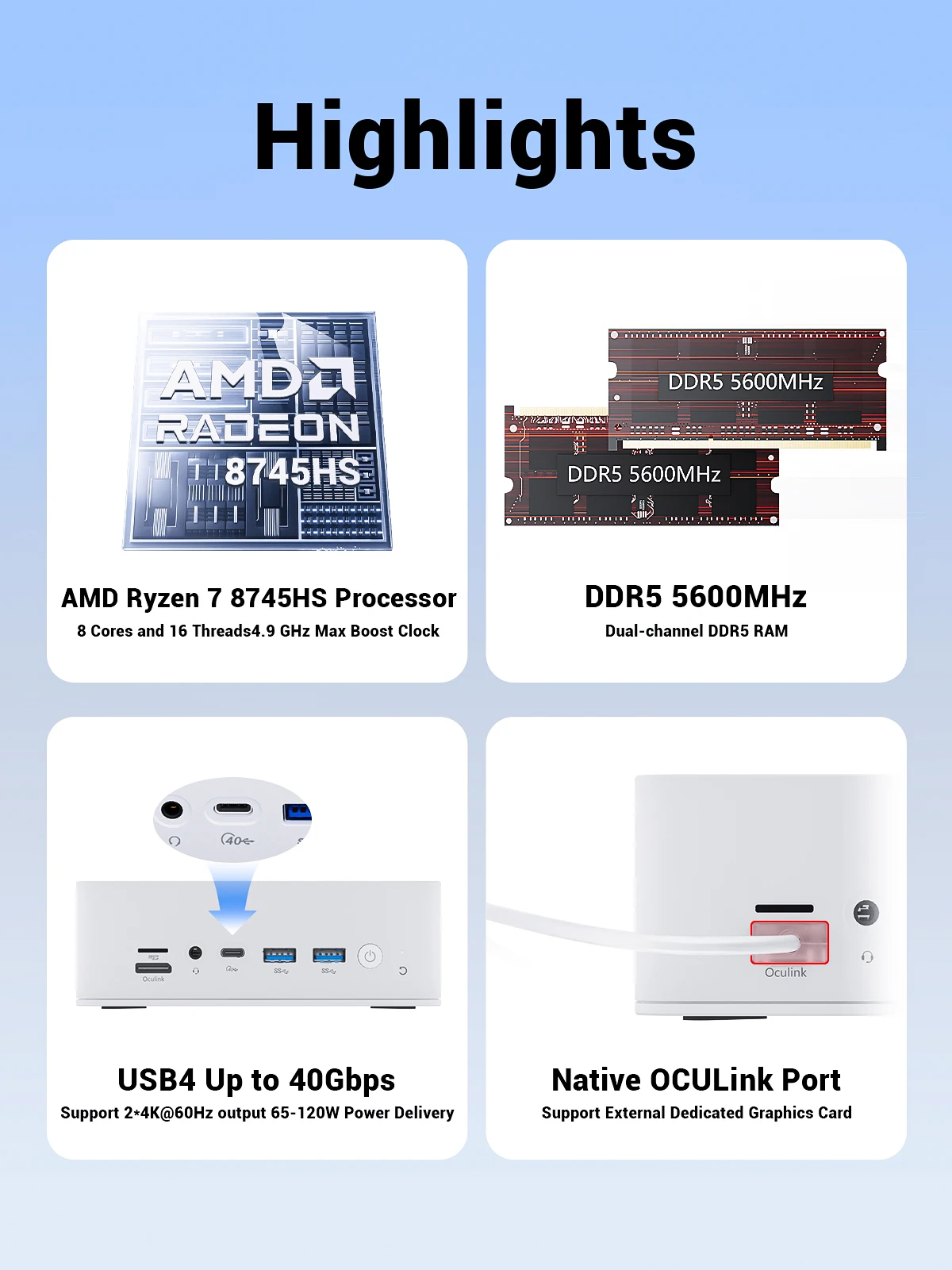 FIREBAT A8 AMD R7-8845HS Radeon 780M Mini Pc Gamer 16GB 1TB DDR5 RJ45 Desktop Gaming Computer BT5.2 WIFI6 Minipc