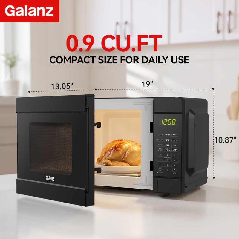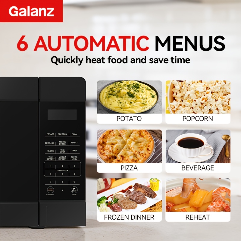 Galanz Compact Microwave Oven with 6-in-1 Automatic Menus, Child Lock & LED, 900W Power, 0.9 Cu.Ft Small Oven, Removable Turntable Plate - Compact Countertop/Balcony Microwave Suitable for Apartments, Dorms, Small Kitchens (B