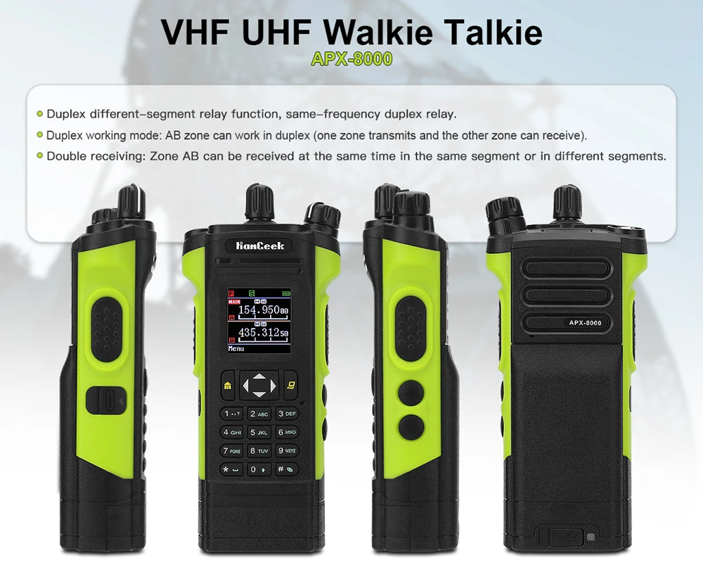 HAMGEEK APX-8000 Green 12W 128CH VHF UHF Walkie Talkie Dual Band Radio Dual PTT and Duplex