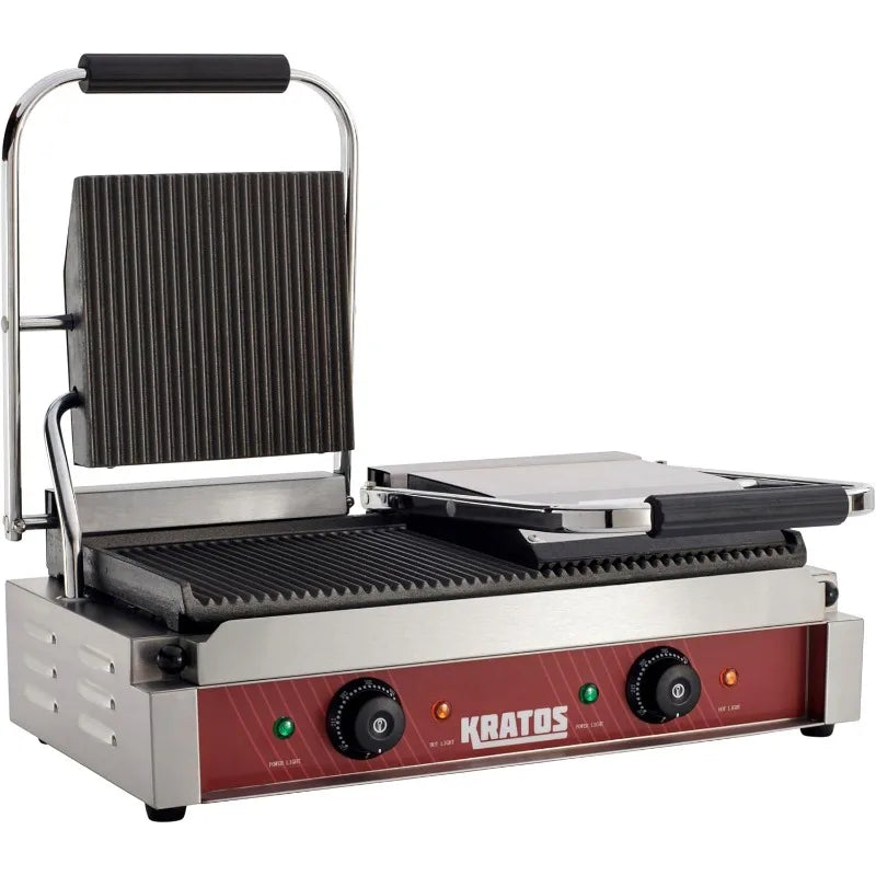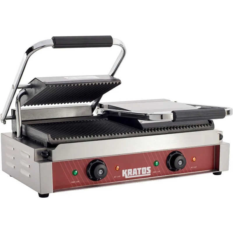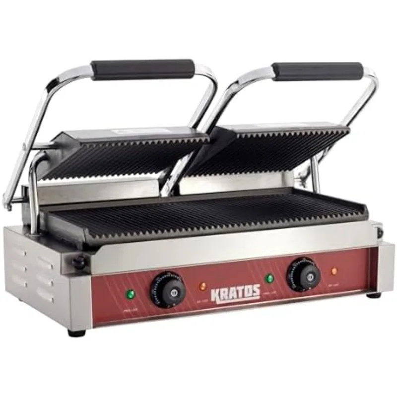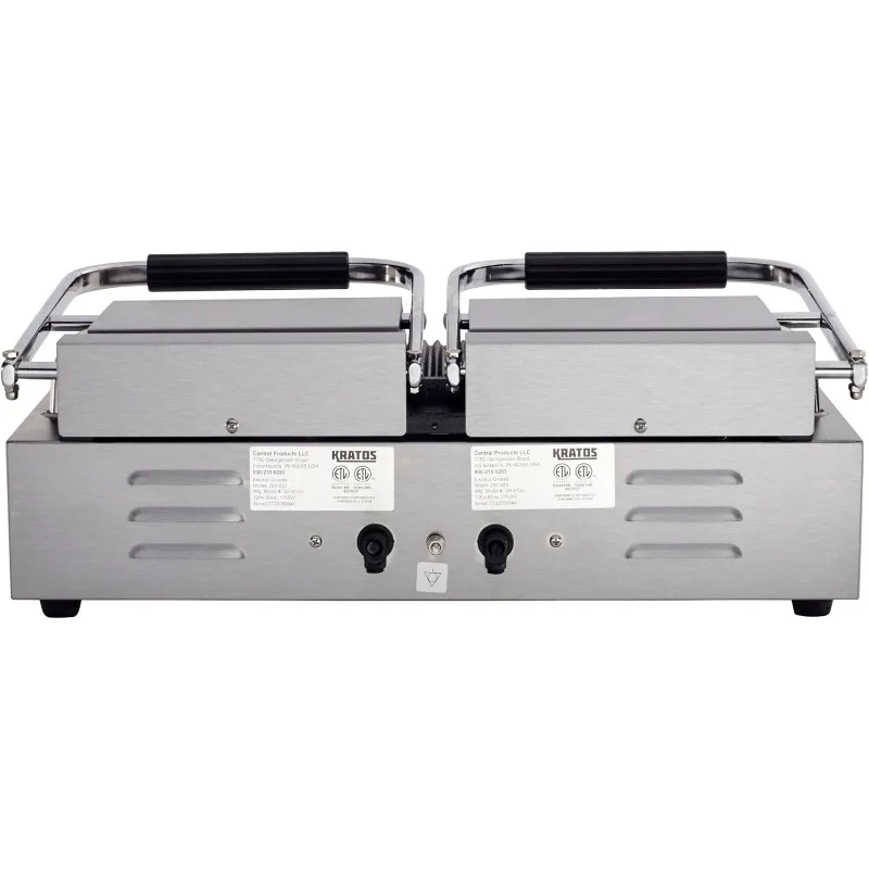 Kratos Commercial Electric Panini Sandwich Grill with Grooved Plates, 18.7" x 9" Cooking Surface