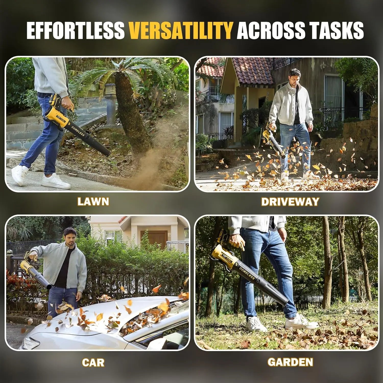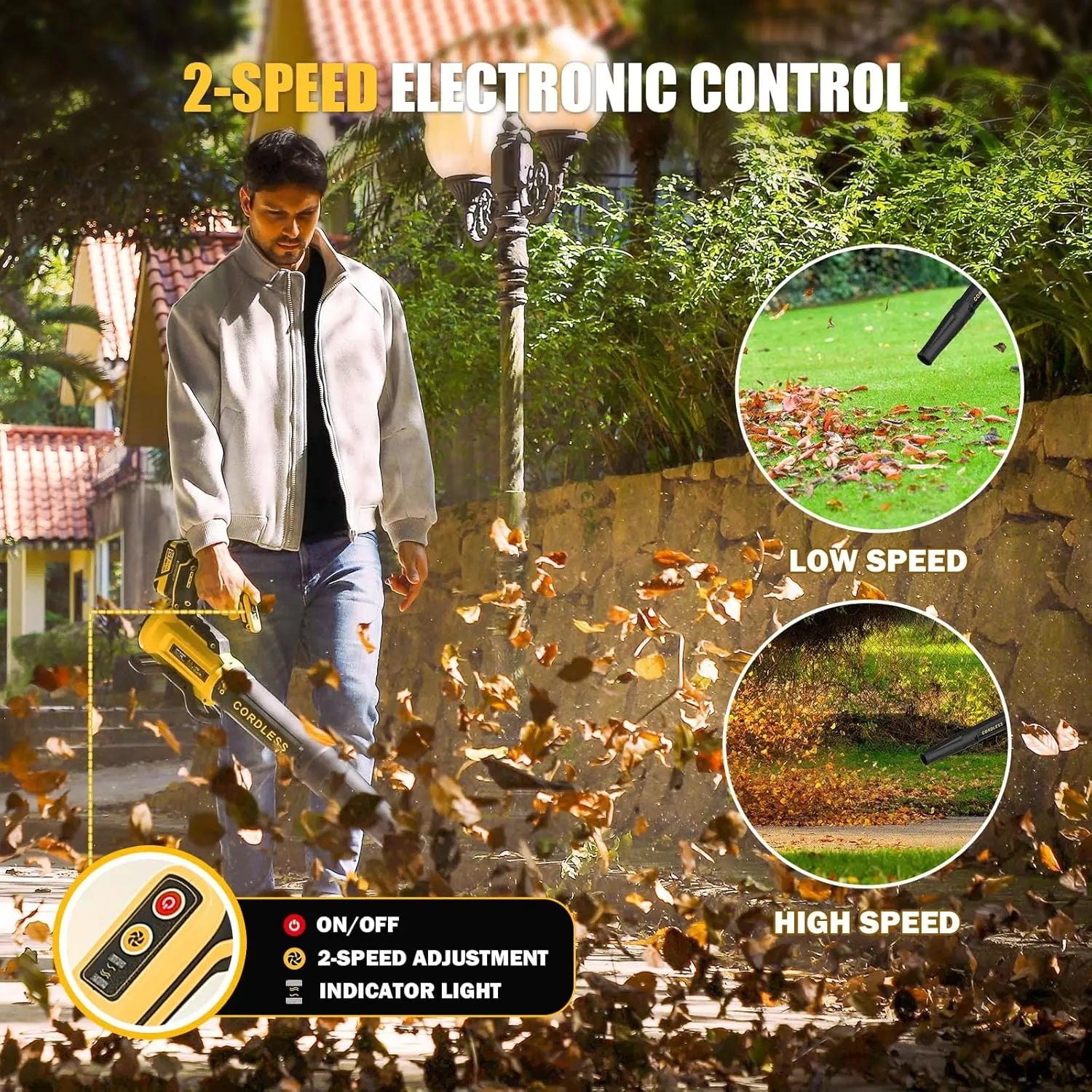 3. User-Friendly Control: With an intuitive 2-speed electronic control, Vinchest cordless leaf blower lets you easily adjust airflow to suit your task. Whether you're clearing large areas or tackling small, precise spots, it’s easy to operate and highly efficient