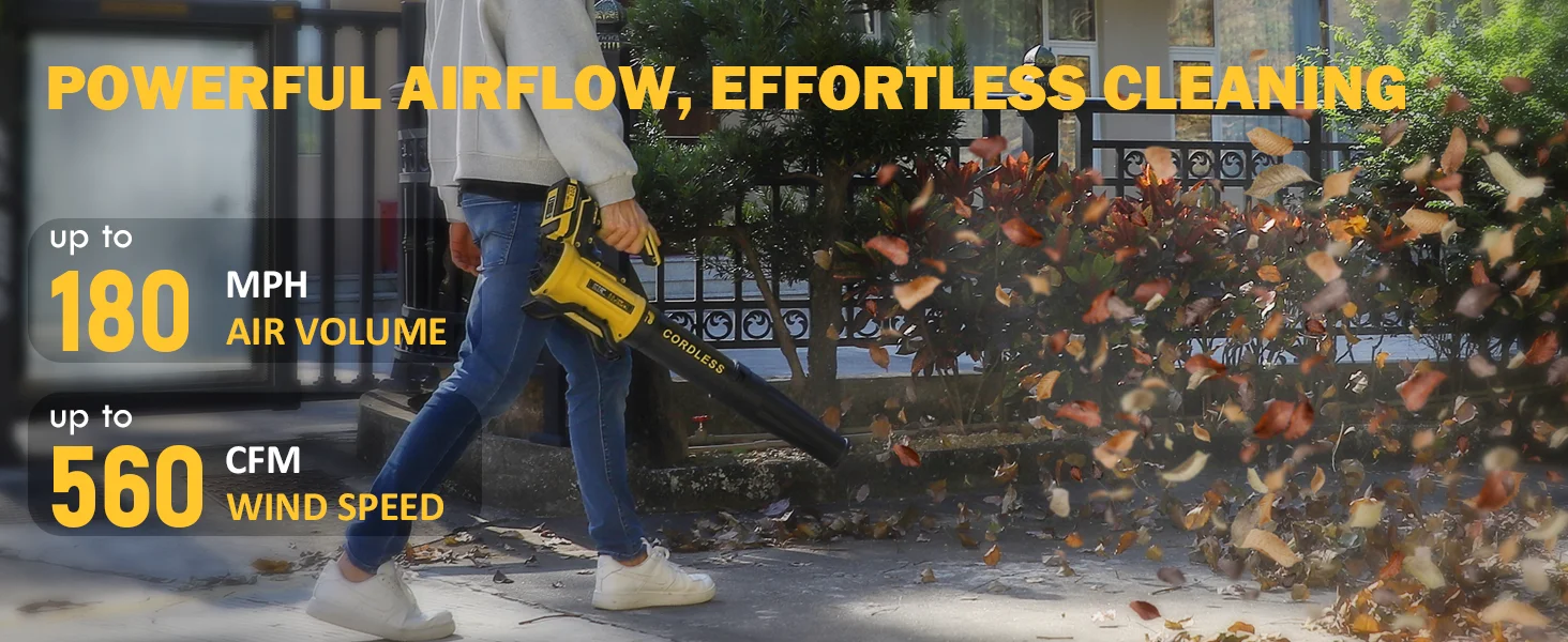 1. Powerful Wind Force: Equipped with a high-performance motor, Vinchest leaf blower delivers up to 560 CFM of air volume and 180 MPH of airspeed. It effortlessly tackles debris and leaves. The cordless design provides unrestricted mobility, making cleaning tasks more efficient and convenient
