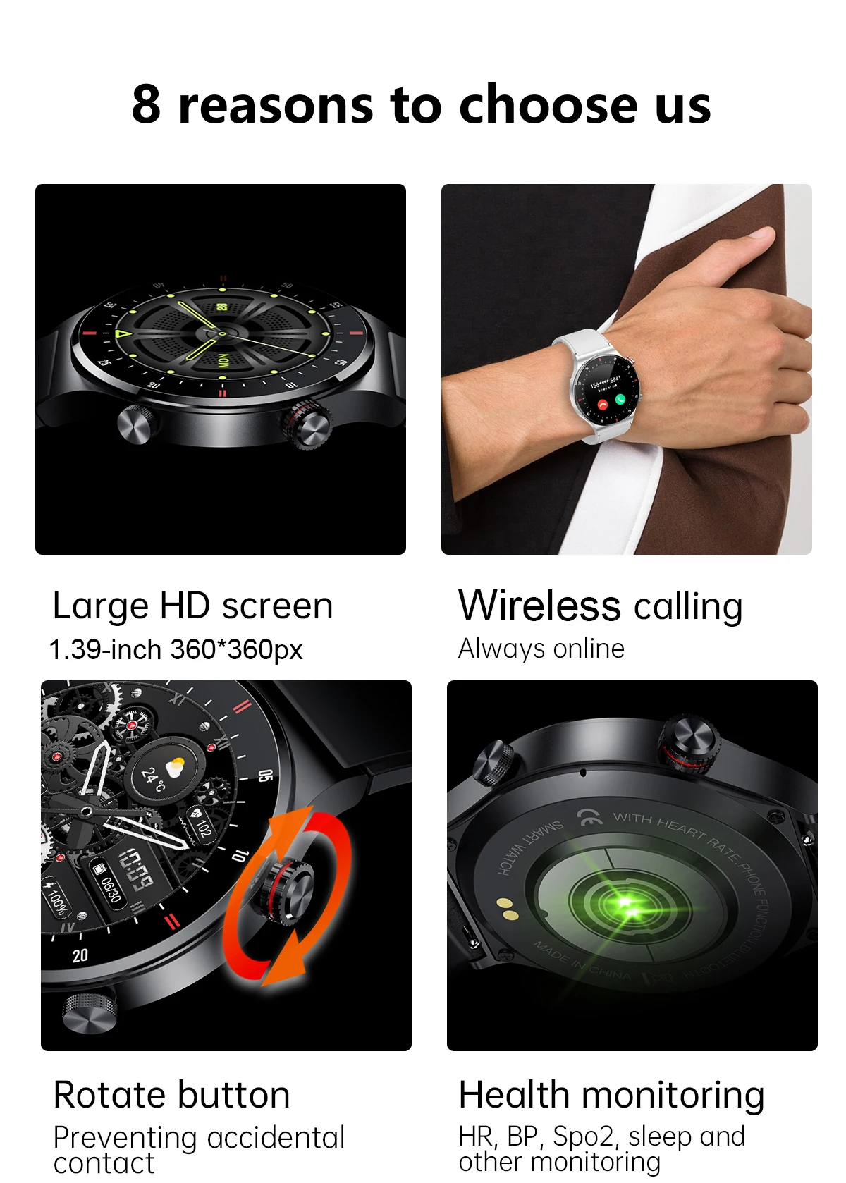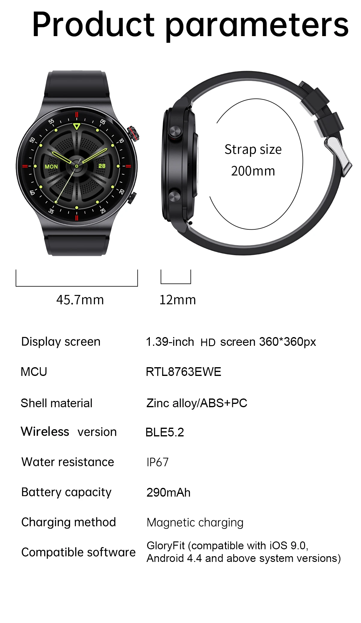 Screen:LCD 1.39"IPS screen, 360*360