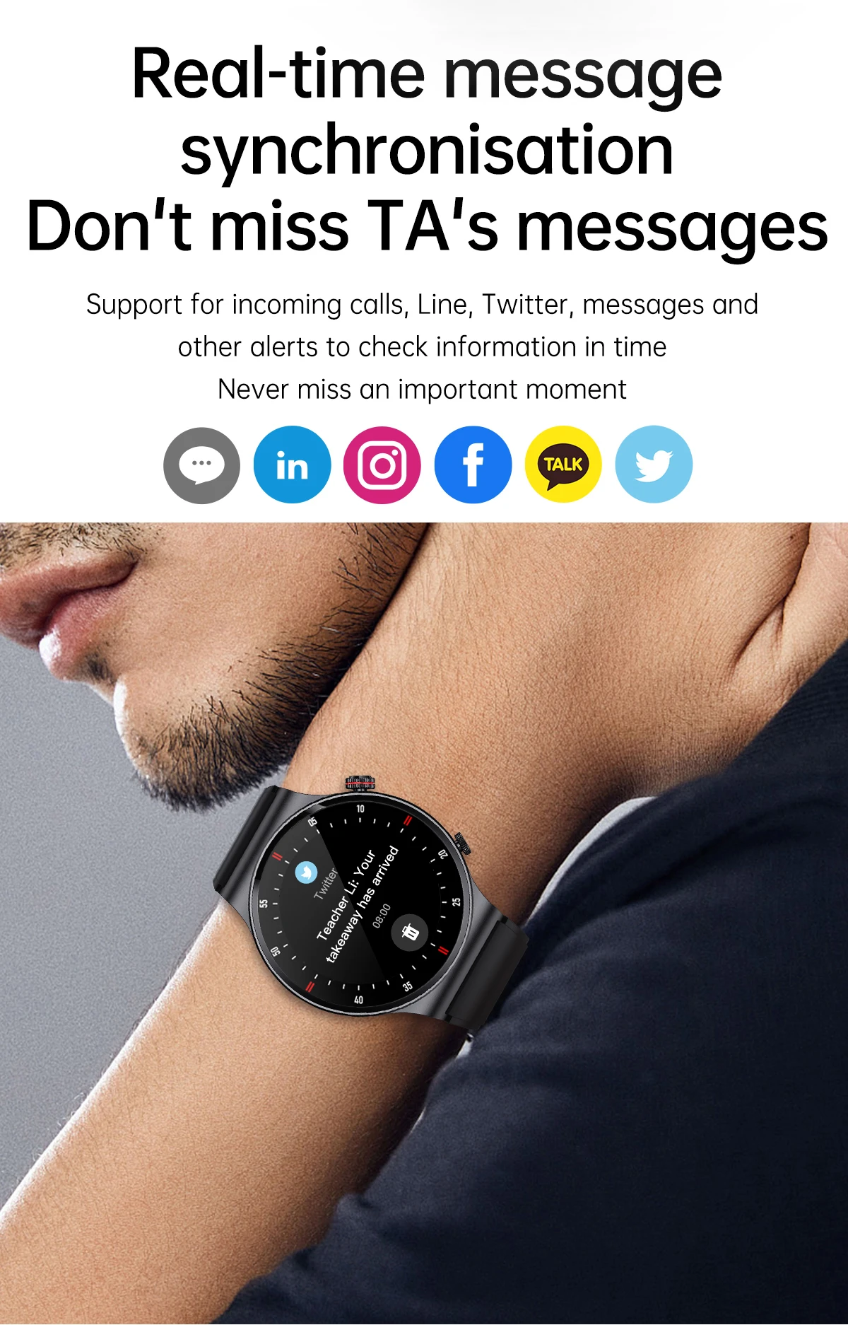 Social APP message reminder Support WeChat, QQ, Facebook, Twitter, Line, Whatsapp, Instagram, etc.