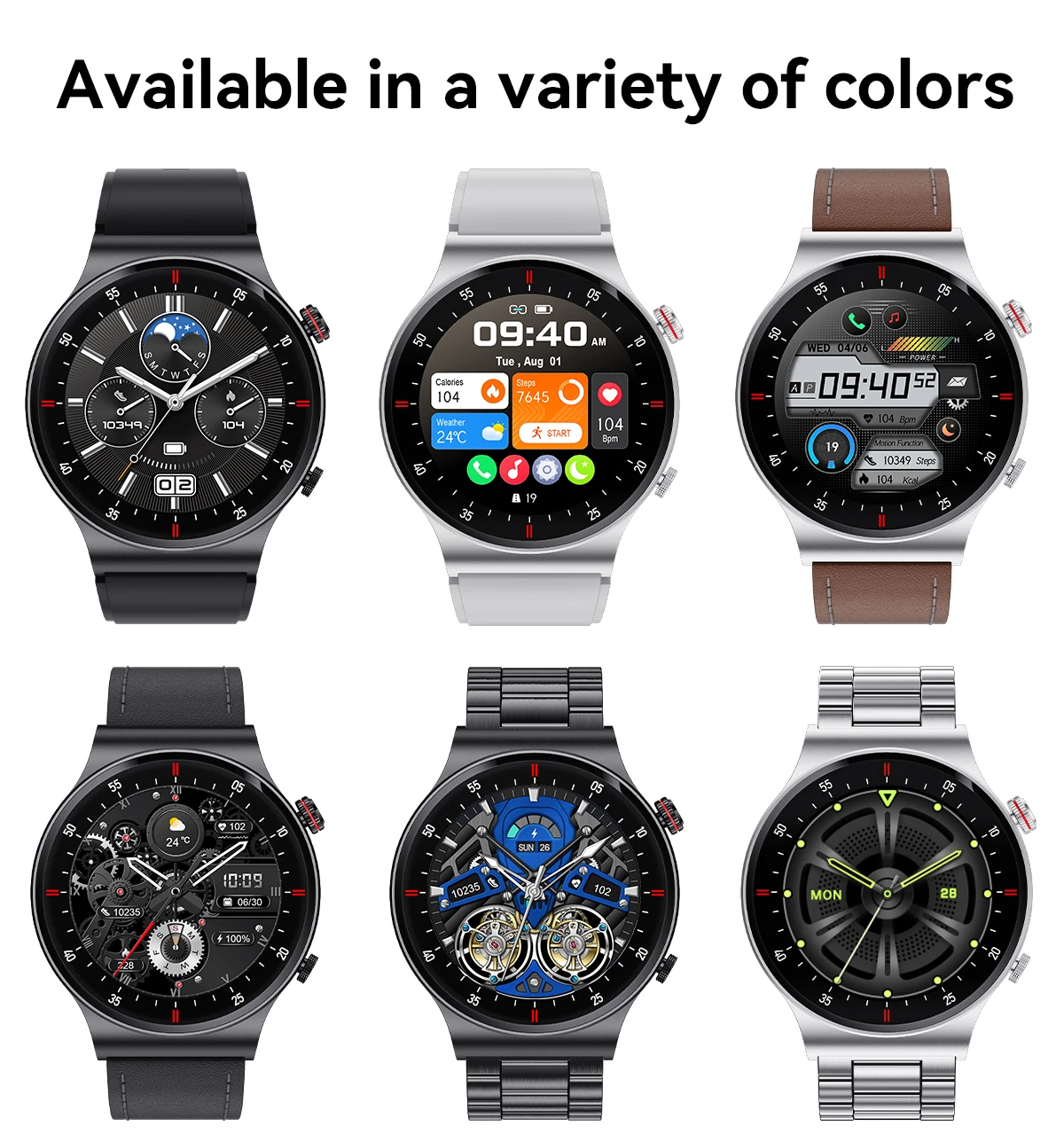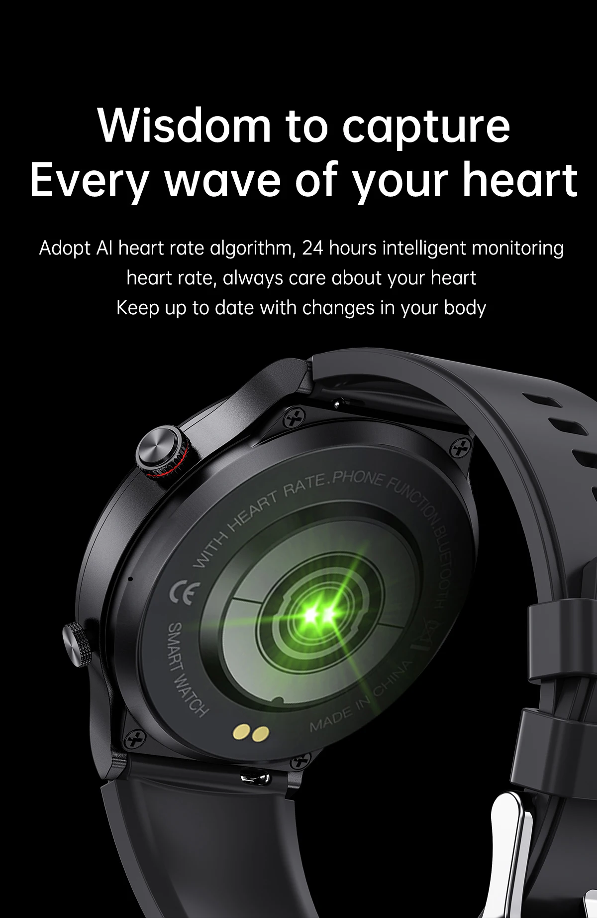 Function: fitness tracker,sleep tracker,Message Reminder,Call Reminder,Answer Call,Dial Call,Push Message,24 hour instruction,Chronograph,Alarm Clock,Small Second,World Time,Calorie Counter,Multiple Time Zone,Power Reserve,week,Month,Heart Rate Tracker,Interactive Music,Calendar