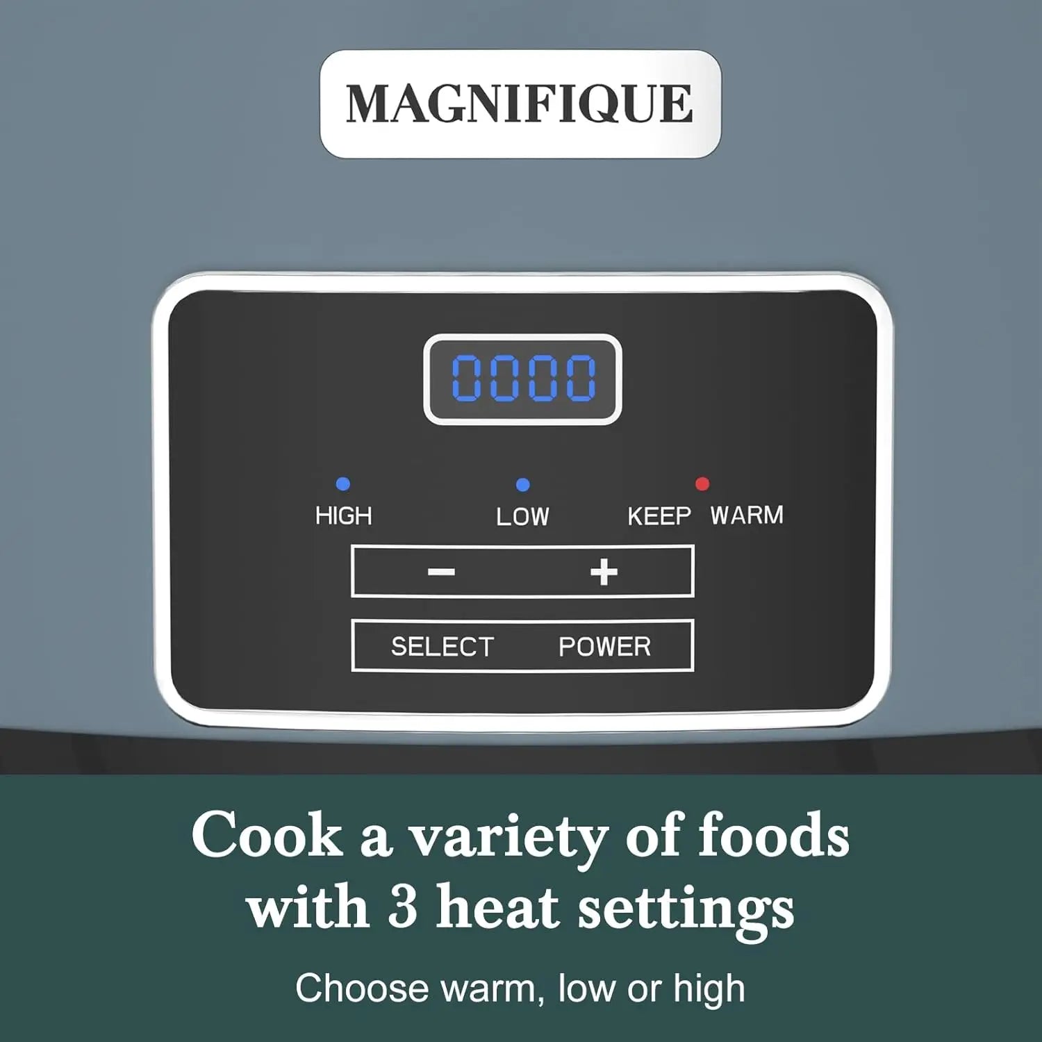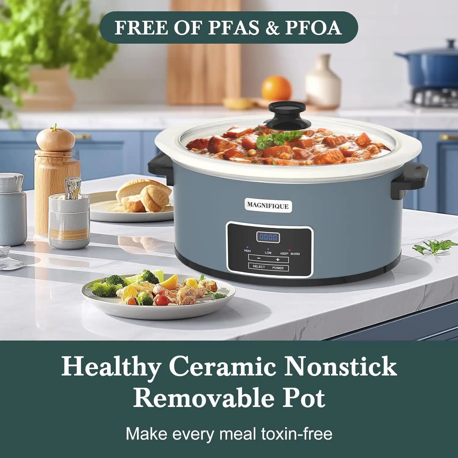 MAGNIFIQUE 7-Quart Programmable Slow Cooker with Timer Keep Warm - Small Kitchen Appliance for Family Dinners - Serves 6+ People (Blue)