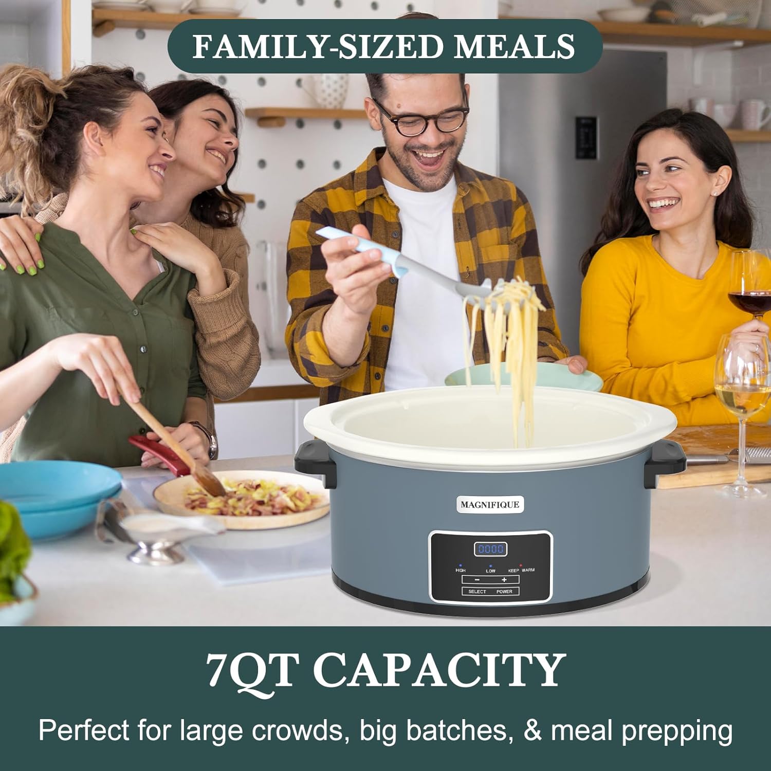 MAGNIFIQUE Programmable Slow Cooker 7 Quart Kitchen Appliance with Timer Keep Warm for Family Dinners Serves 6 plus People
