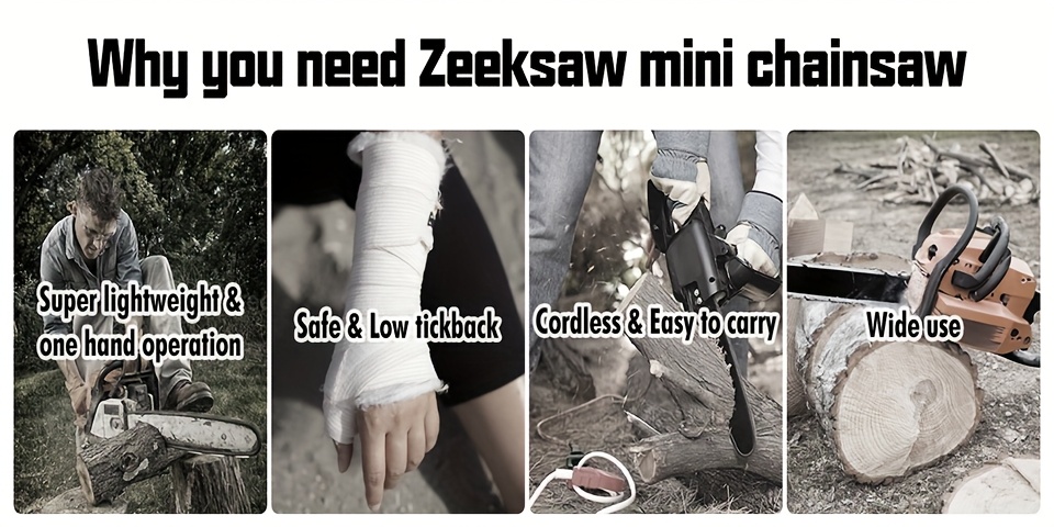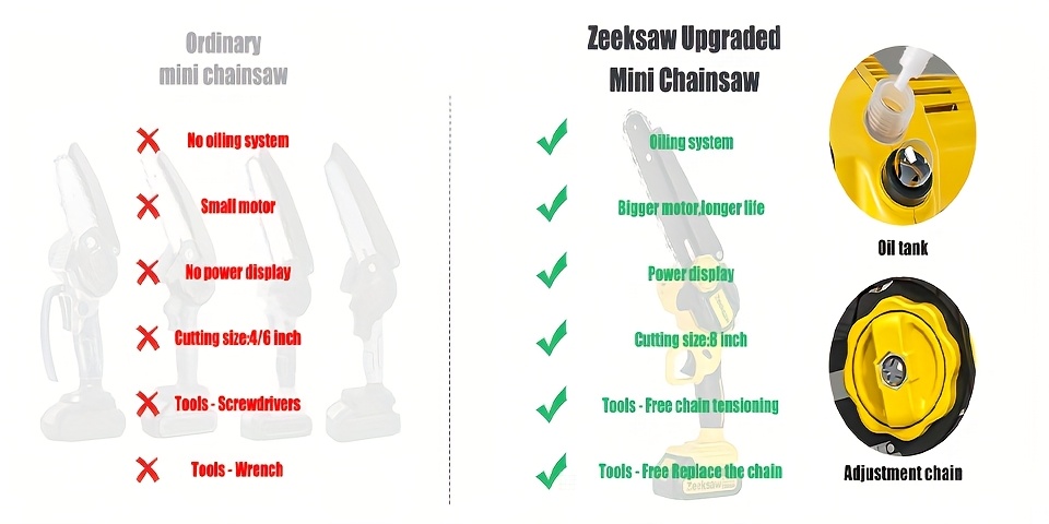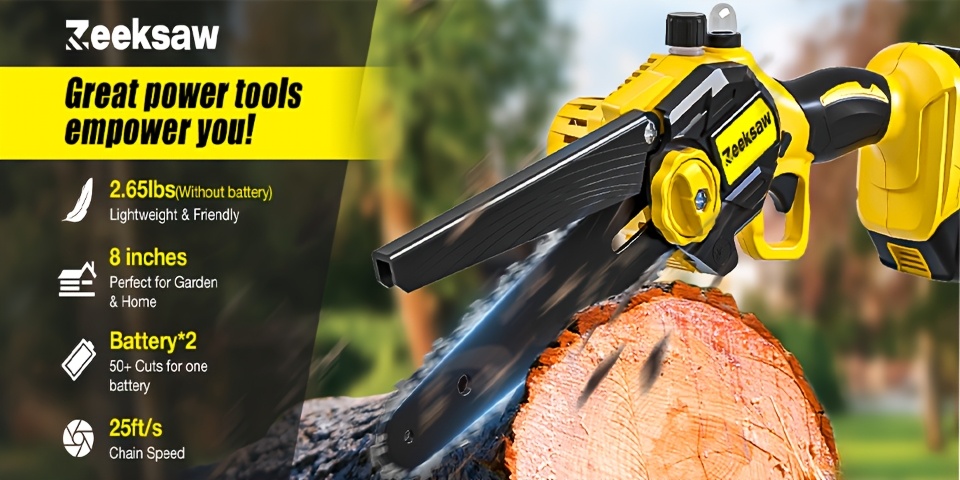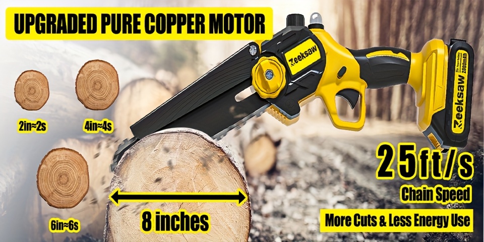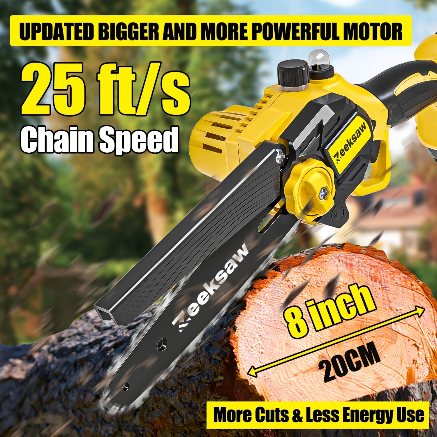 Mini Chainsaw Cordless, 8 Inch Handheld Electric Chain Saw with 2pcs 2.0Ah Battery And Charger, 26ft/S Speed - Automatic Chain Tensioning & Auto Oiler for Tree Branches, Courtyard, Household, And Garden, ZEEKSAW