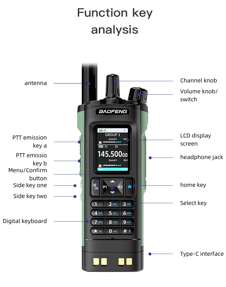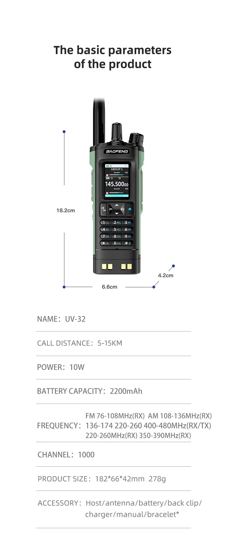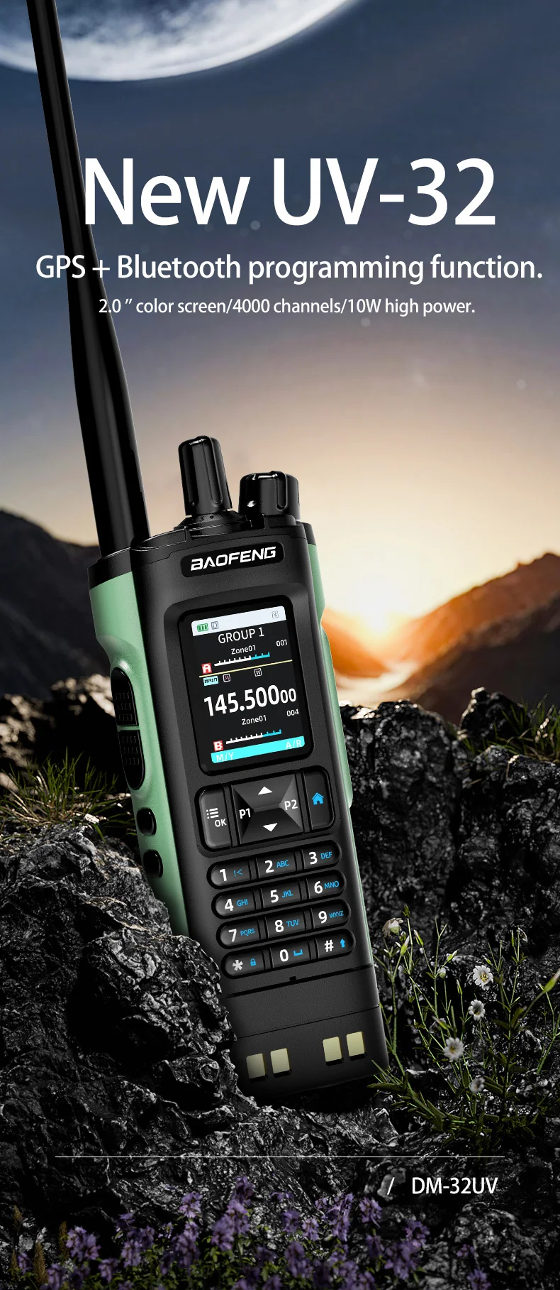 New BAOFENG UV-32 Walkie Talkie GPS 10W Bluetooth APP Programming Multi Band Wireless Copy Frequency Type-C UV32 Ham 2 Way Radio