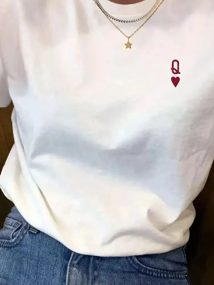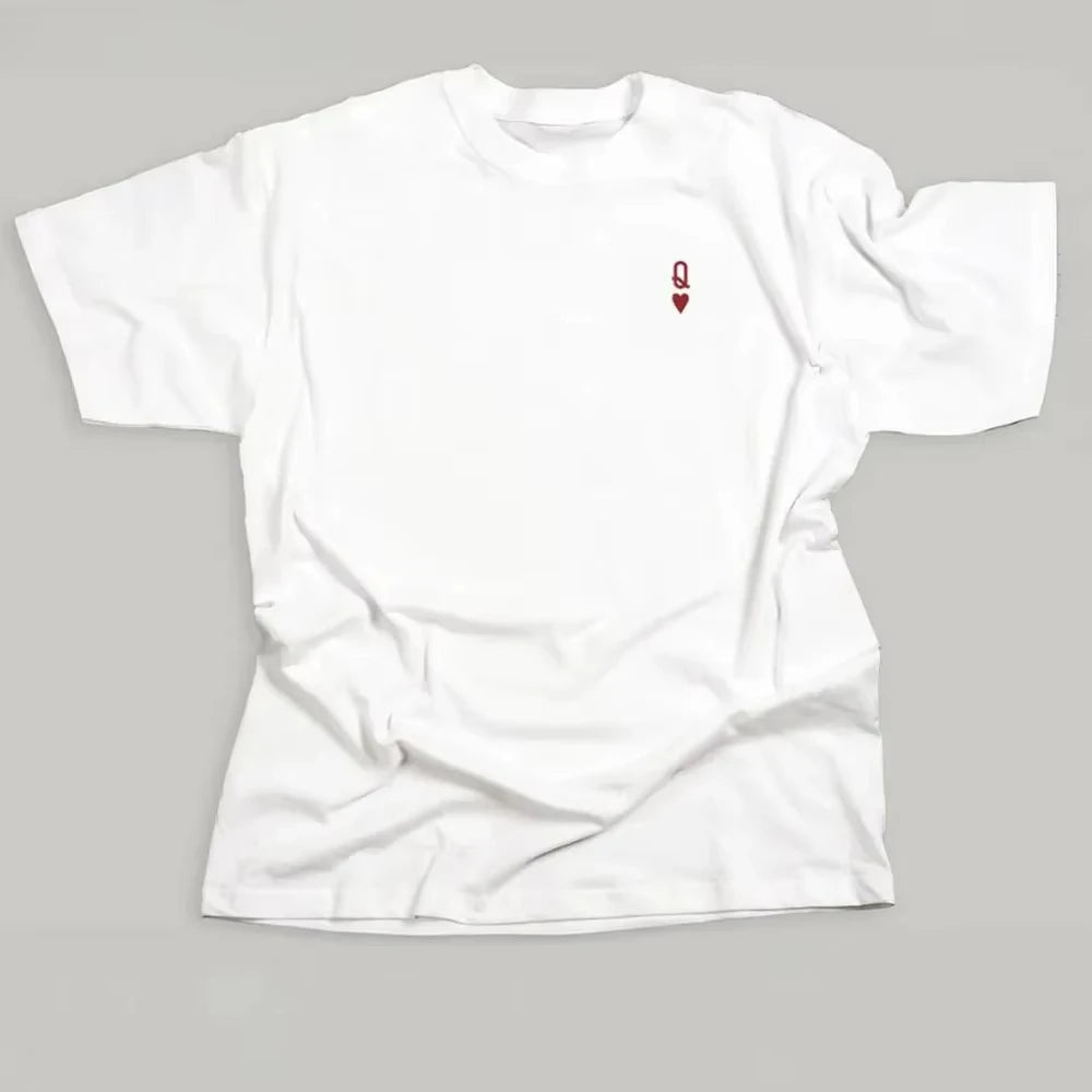 Queen of Hearts Letter T-Shirts Female White Loose Summer Cotton Tops Short Sleeve Casual Shirt Women Graphic Female Clothing