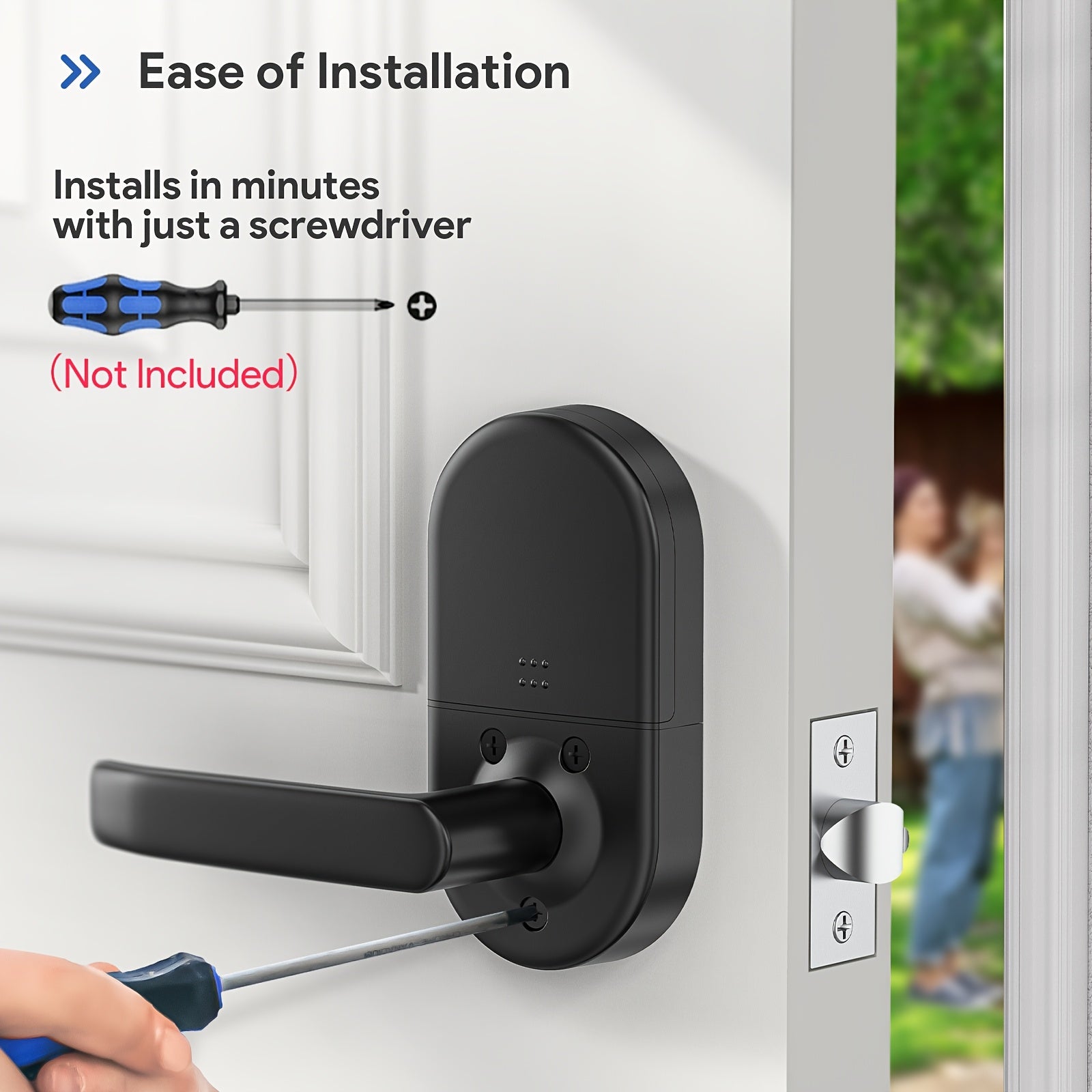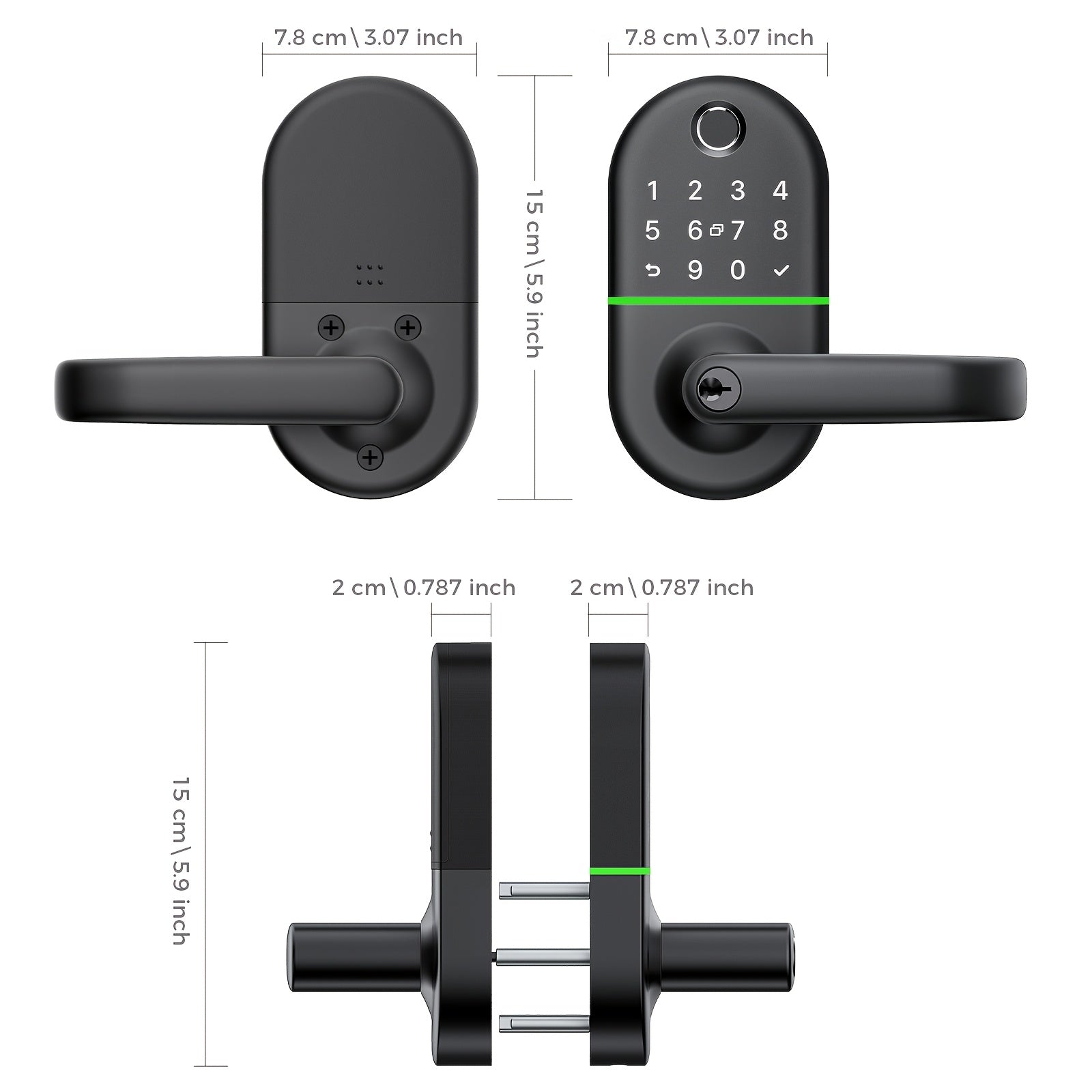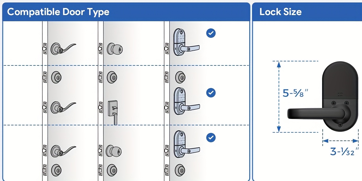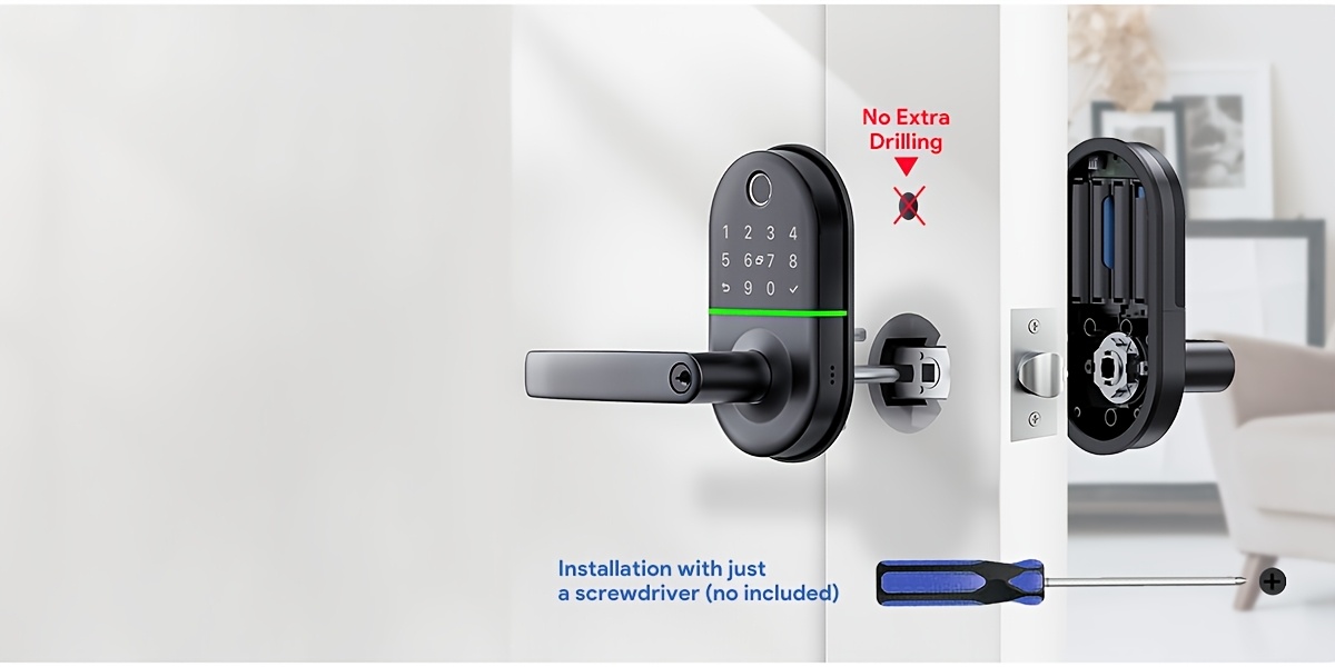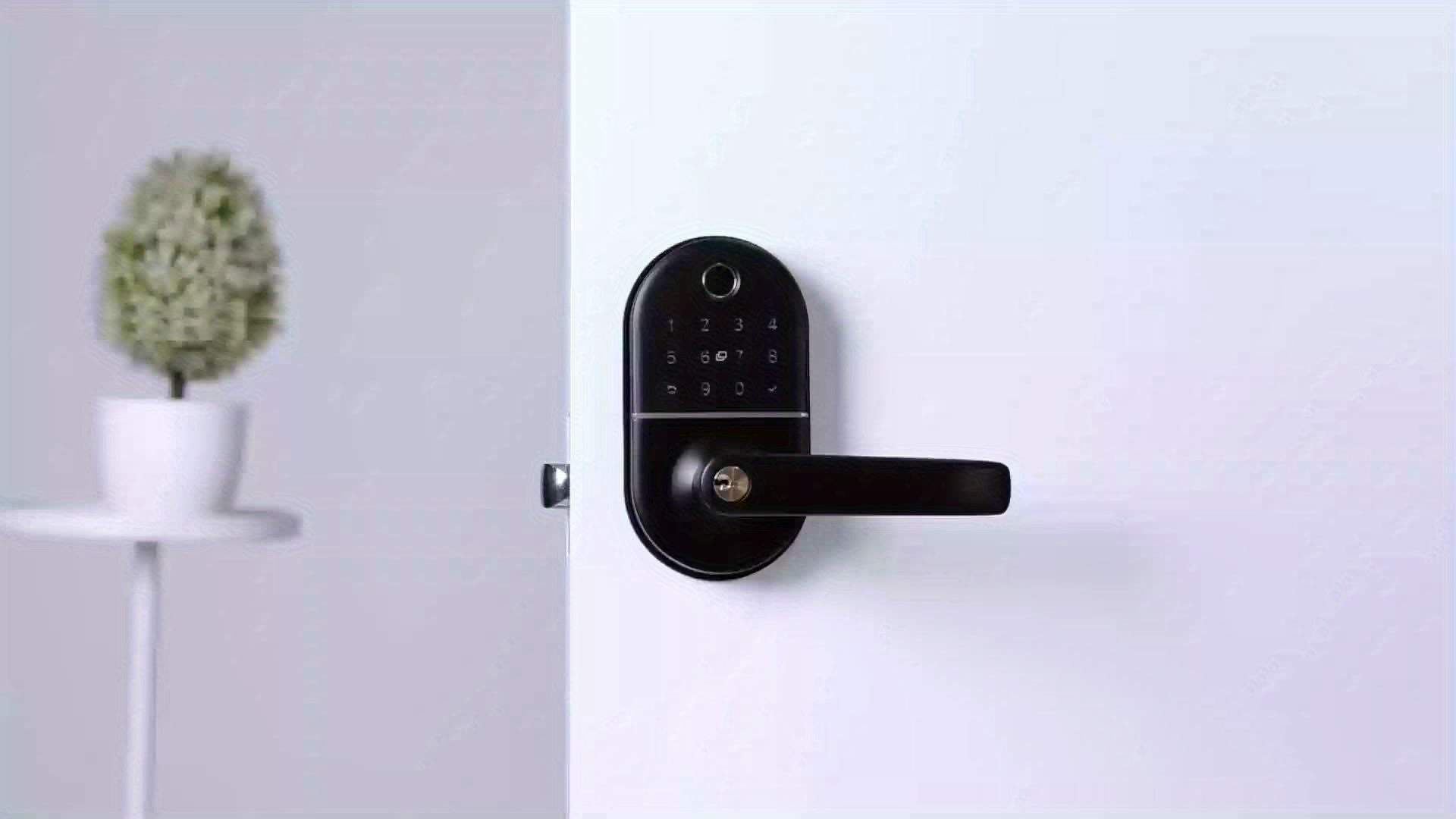 Smart Keypad Door Lock with Handle - Keyless Entry Fingerprint Biometric Lock, Enabled Electronic Deadbolt, App Control & -Peek Keypad, Compatible with Doors (, Black) - Smartphone Lock/Unlock via