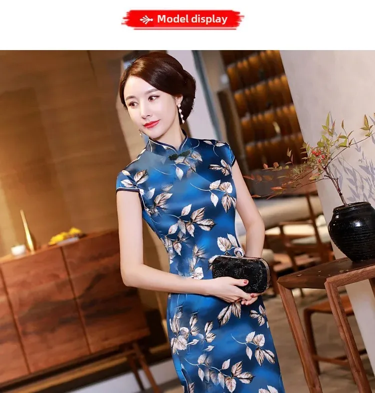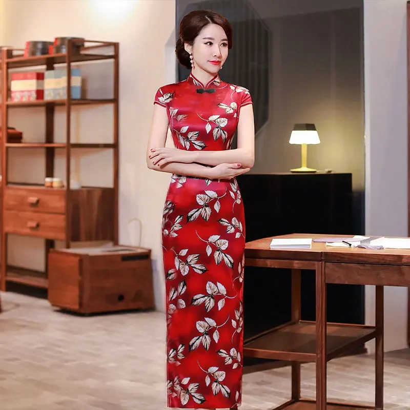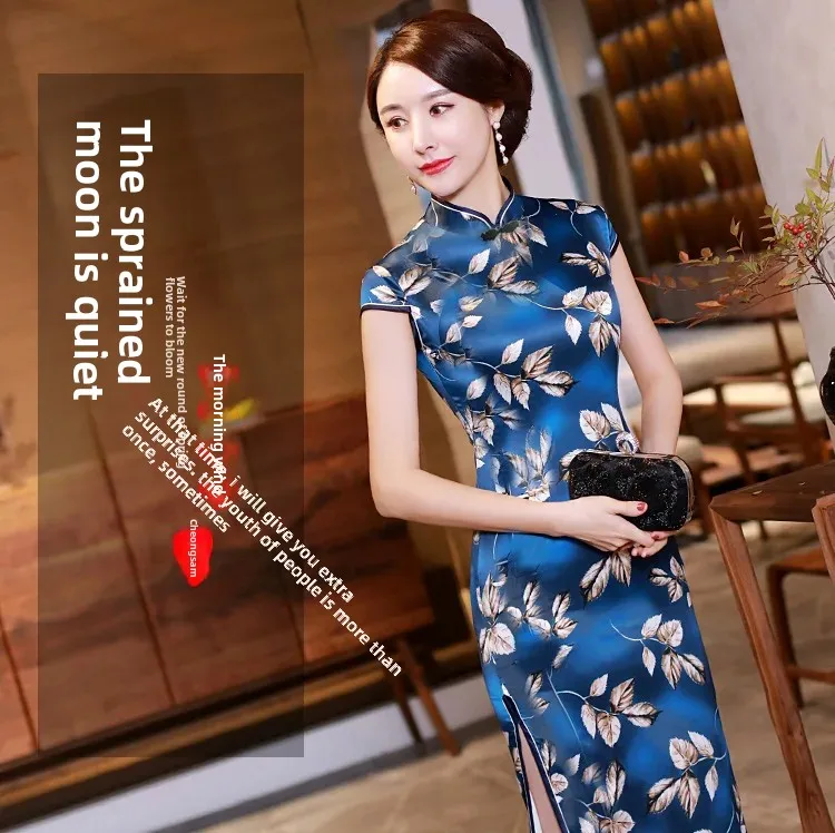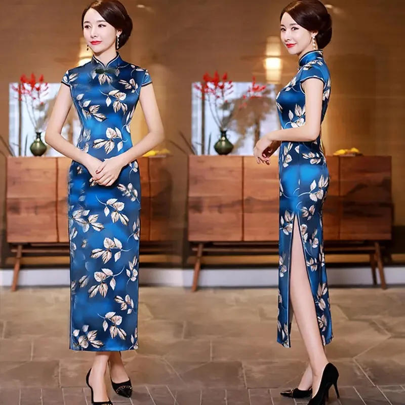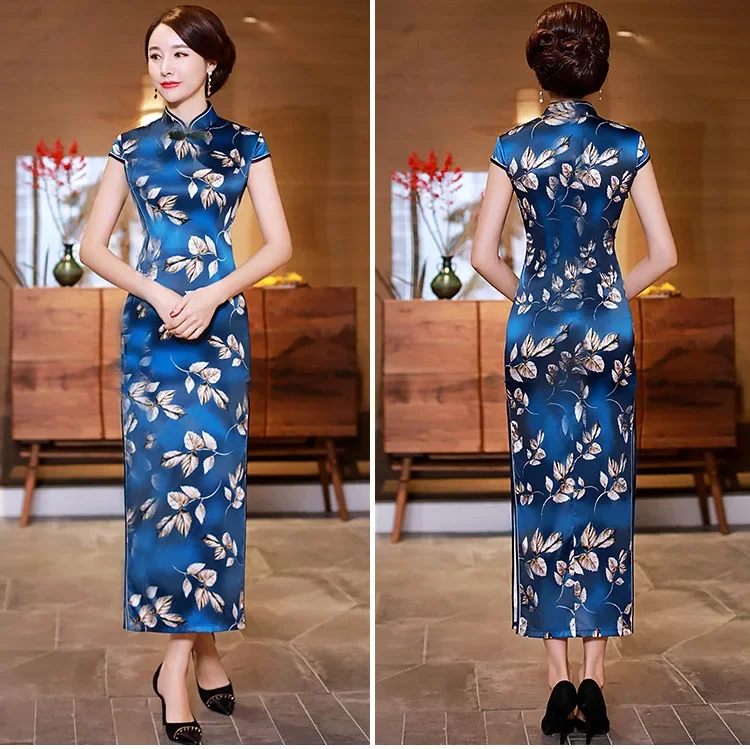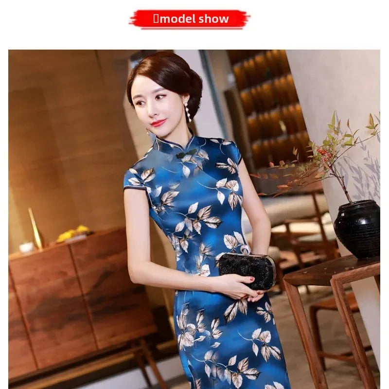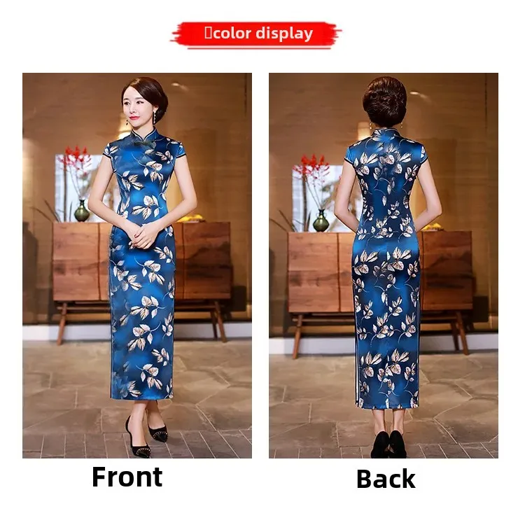 Summer Hot Sale Of The Season Long Elegant Ladylike Slit Qipao Dress Women's Mid-Aged Mommy Style Ethnic Fashion Long Qipao Dres