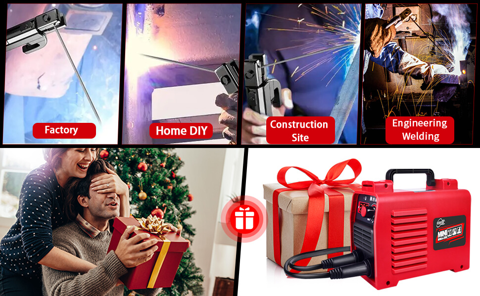 It makes an excellent gift! This welder is perfect for factories, home DIY projects, construction sites, and beginners. If you're simply looking to replace your welder, the new HGNVGZ model is definitely the ideal choice! Versatile in use: You can build and repair various projects such as garden fences, room roofs, bicycles, iron gates, metal shelves, and more, welding low-carbon steel, carbon steel, and cast iron. The welder looks very stylish—you can prepare this exquisite gift for your loved one! Safety Warning: Keep the welder as far away from the welding area as possible to prevent sparks from flying into the welder, ensuring your safety and extending the welder's service life