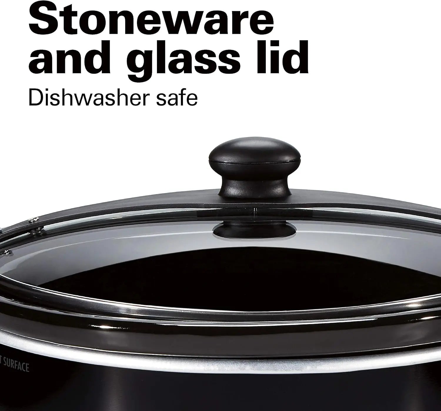The 10 quart slow cooker has a dishwasher safe crock. The 7 quart slow cooker crock is also dishwasher safe.