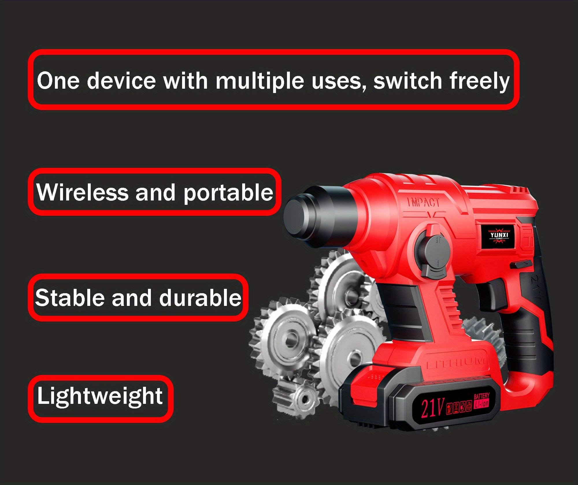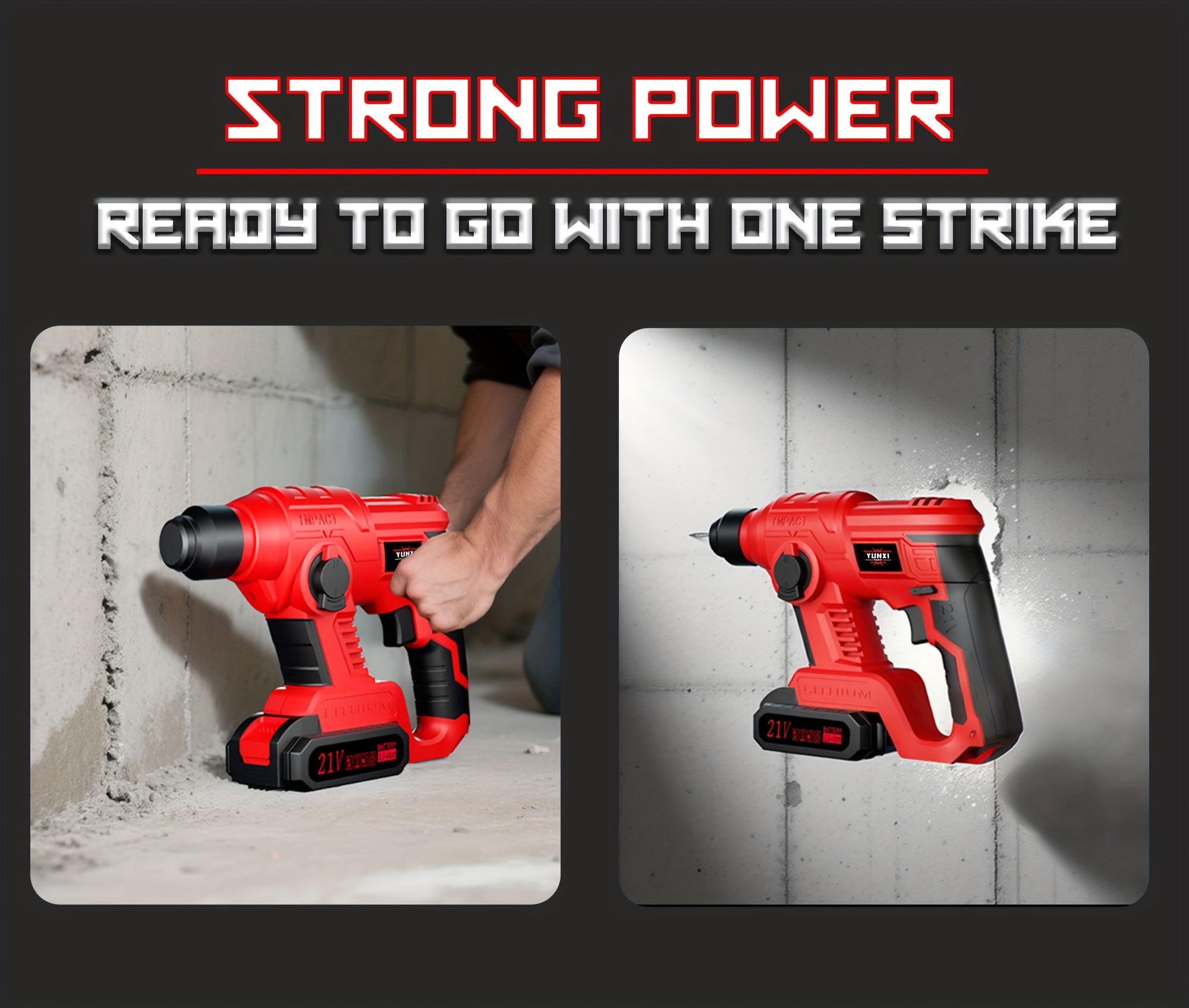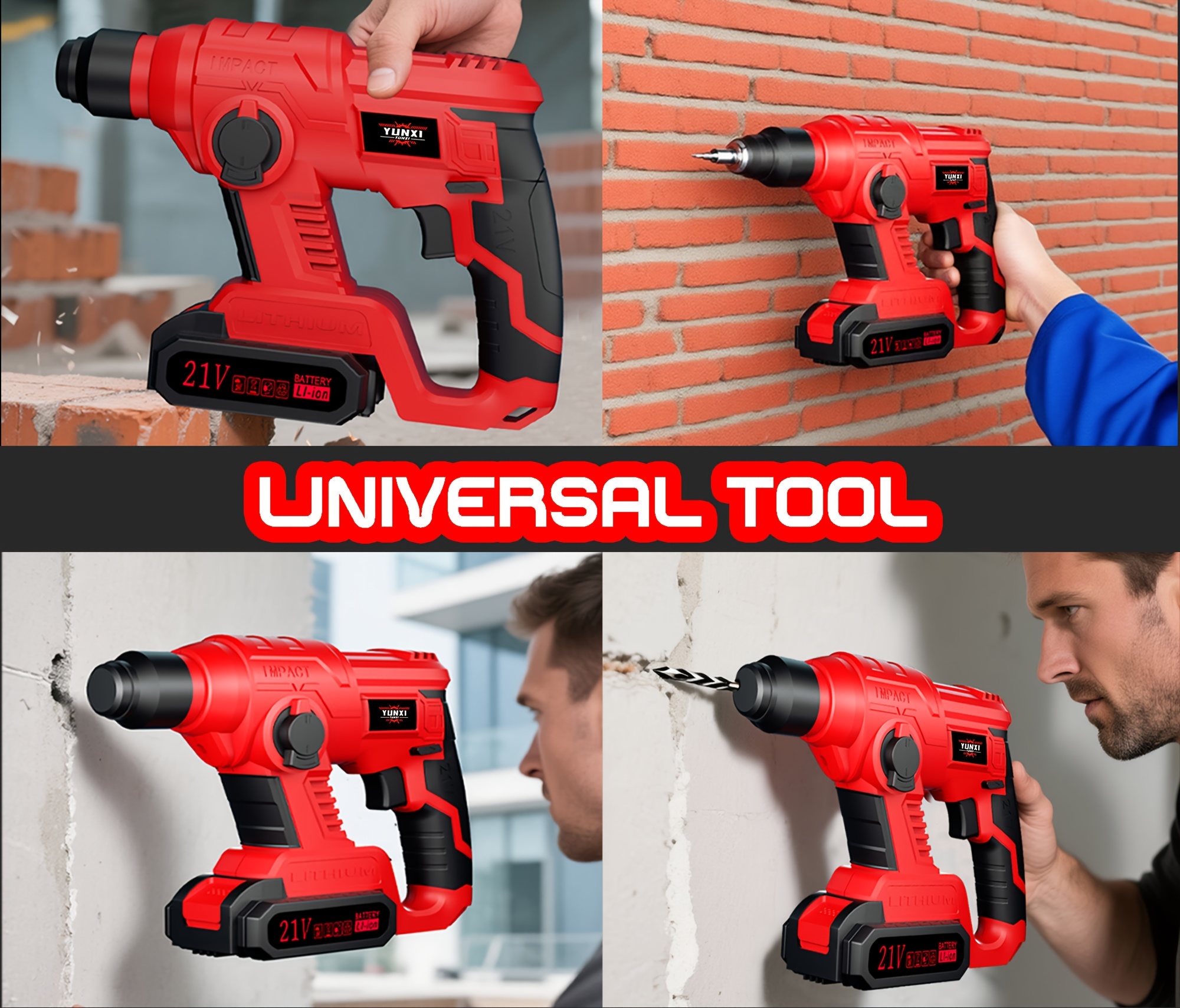 Wireless Hammer Drill Impact Tool - Wireless Lithium-ion Powered, Ideal For Demolition, Construction, And Heavy-duty Drilling. Ergonomic, Durable, And Sturdy, Suitable For Both Men And Women. Perfect Gift For Friends And Fami